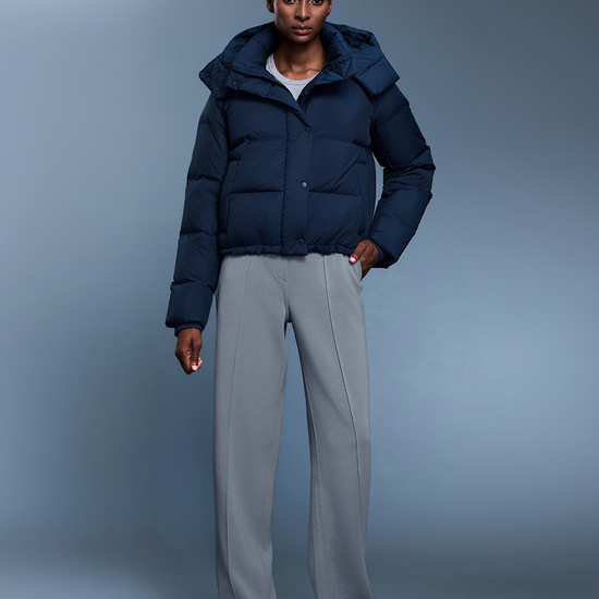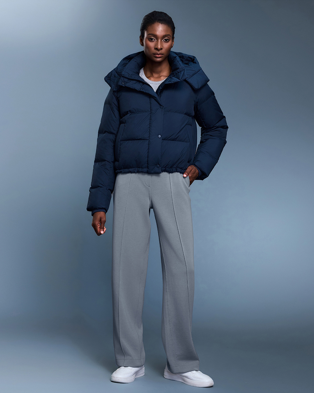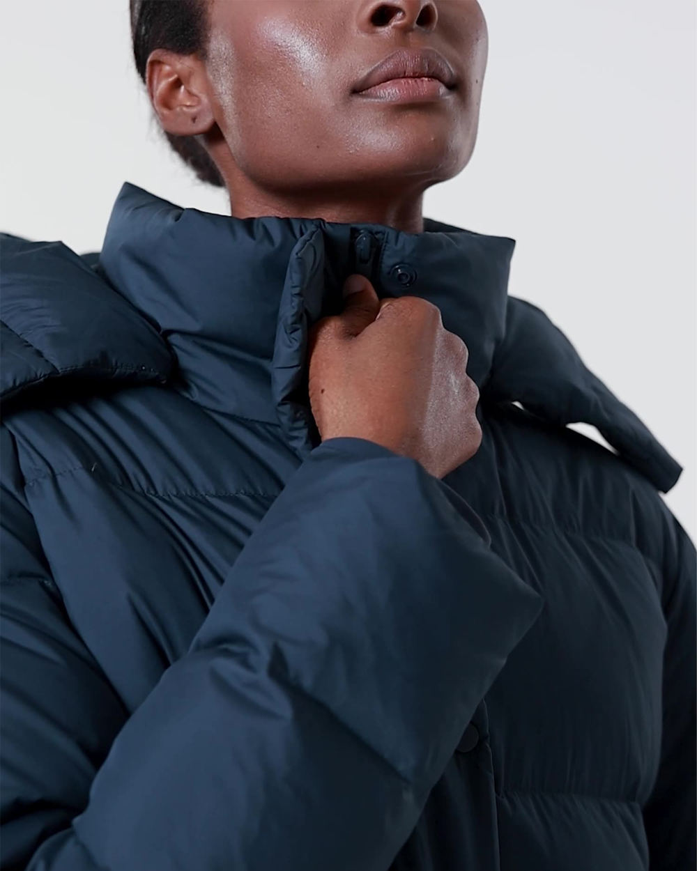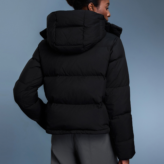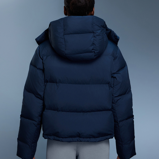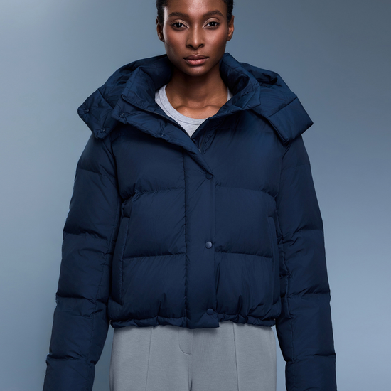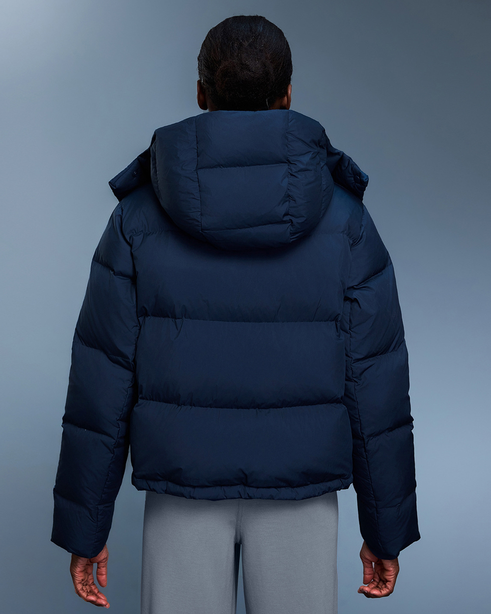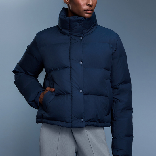 Relaxed puffer fit with dropped shoulders. Choose your normal size for layering comfort or size down for a more fitted winter look.