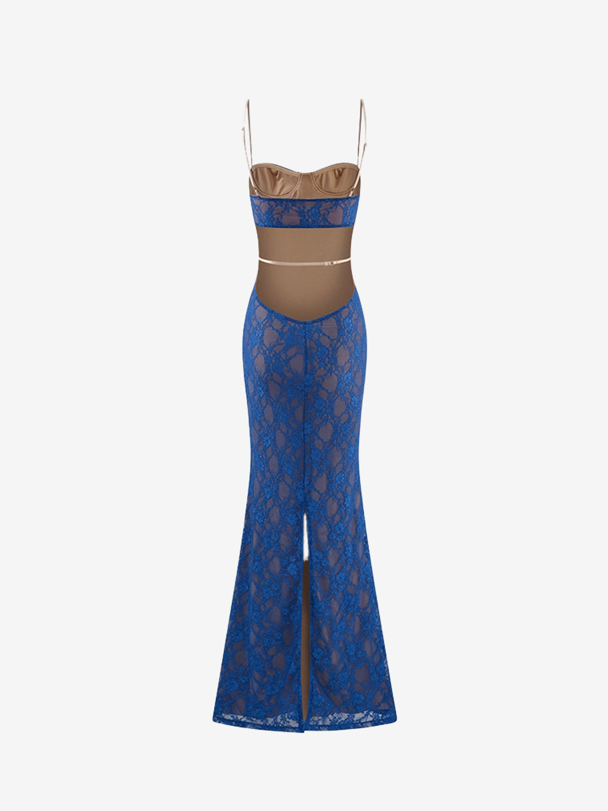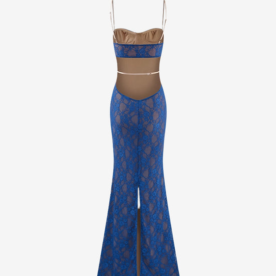 Electric Sapphire Lace Mermaid Gown | Open-Back Resort & Birthday Maxi Dress