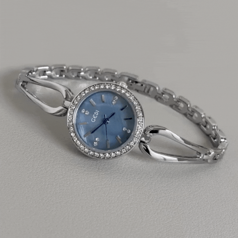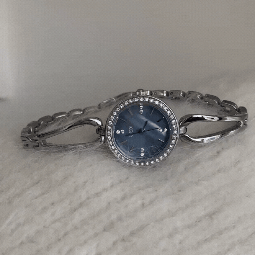 Este elegante reloj de cuarzo combina un elegante brazalete plateado con una impresionante esfera azul. La esfera redonda y el diseño minimalista crean un look refinado y moderno. Perfecto para añadir un toque de sofisticación a cualquier look, ya sea para el día a día o para ocasiones especiales.
