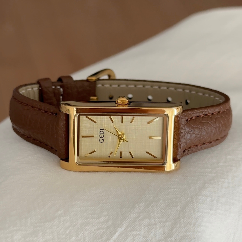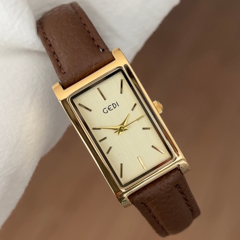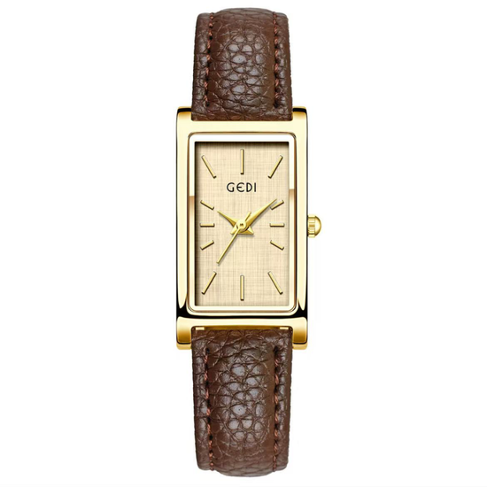 Experience the perfect harmony of classic elegance and contemporary design with our square watch. This exquisite timepiece features a radiant gold dial set in a polished gold-tone case, paired with a premium brown genuine leather strap that develops a unique patina over time.