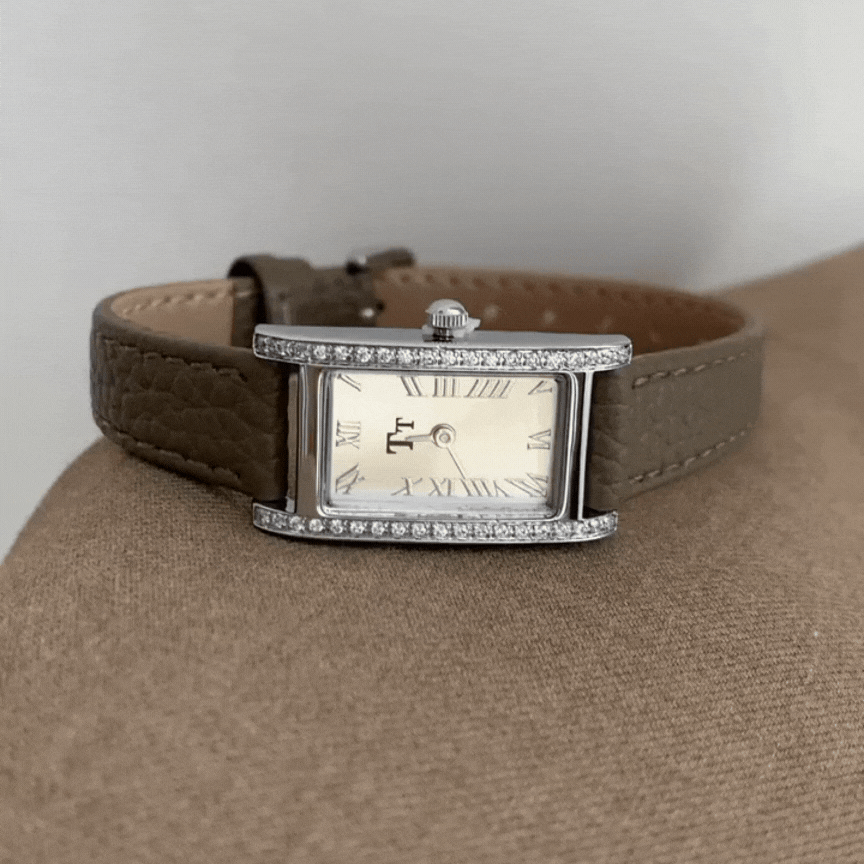 Este exquisito reloj cuenta con una sofisticada correa de piel auténtica color gris elefante, que le ofrece un aspecto elegante y versátil. La esfera rectangular está adornada con deslumbrantes diamantes, que añaden un toque de lujo y elegancia a su diseño minimalista. Las líneas limpias y la sutil paleta de colores lo convierten en el accesorio perfecto tanto para ocasiones informales como formales. Impulsado por un preciso movimiento de cuarzo, este reloj combina practicidad con belleza atemporal, convirtiéndolo en la opción ideal para quienes aprecian el diseño refinado y la exquisita artesanía.