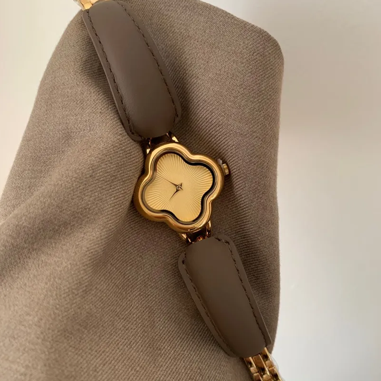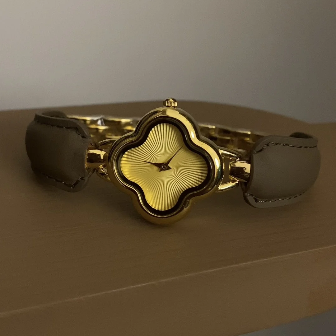 Elephant Grey Watepiece: Reloj de cuarzo de cuero de dial de dial trébol
