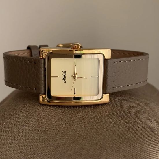 Elephant Grey Wimepiece: Gold Square Quartz Watch