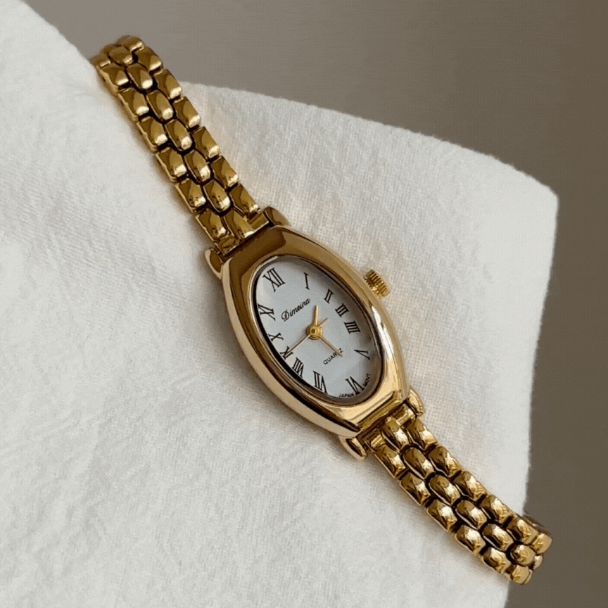 Presentando el Reloj romano elípticoUna impresionante fusión de lujo y encanto vintage francés. Con su elegante forma elíptica, su clásica esfera con números romanos y sus intrincados detalles dorados, este reloj encarna una refinada estética retro. Su pequeña y delicada caja dorada añade un toque extra de sofisticación, haciéndolo perfecto para quienes disfrutan de la moda atemporal y la elegancia discreta. Ya sea que desee añadir un toque de elegancia a su atuendo diario o realzar un look formal, este reloj promete realzar su estilo con su lujo y encanto vintage.