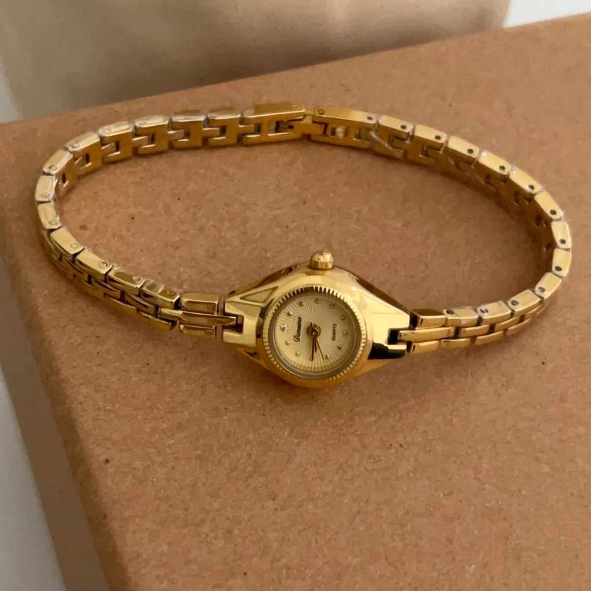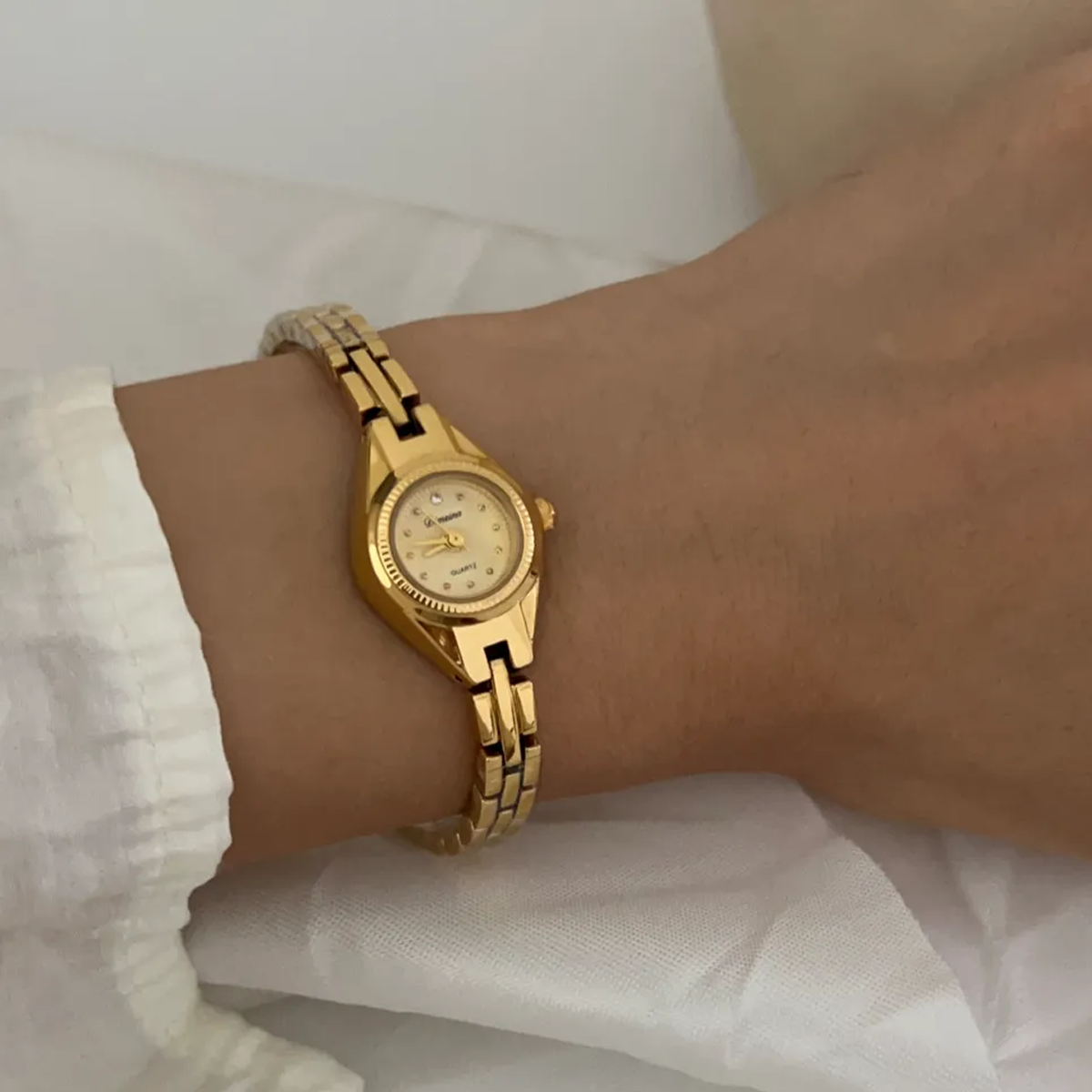 Pulsera de oro de inspiración francesa con pétido dial redondo: reloj de cuarzo de dama