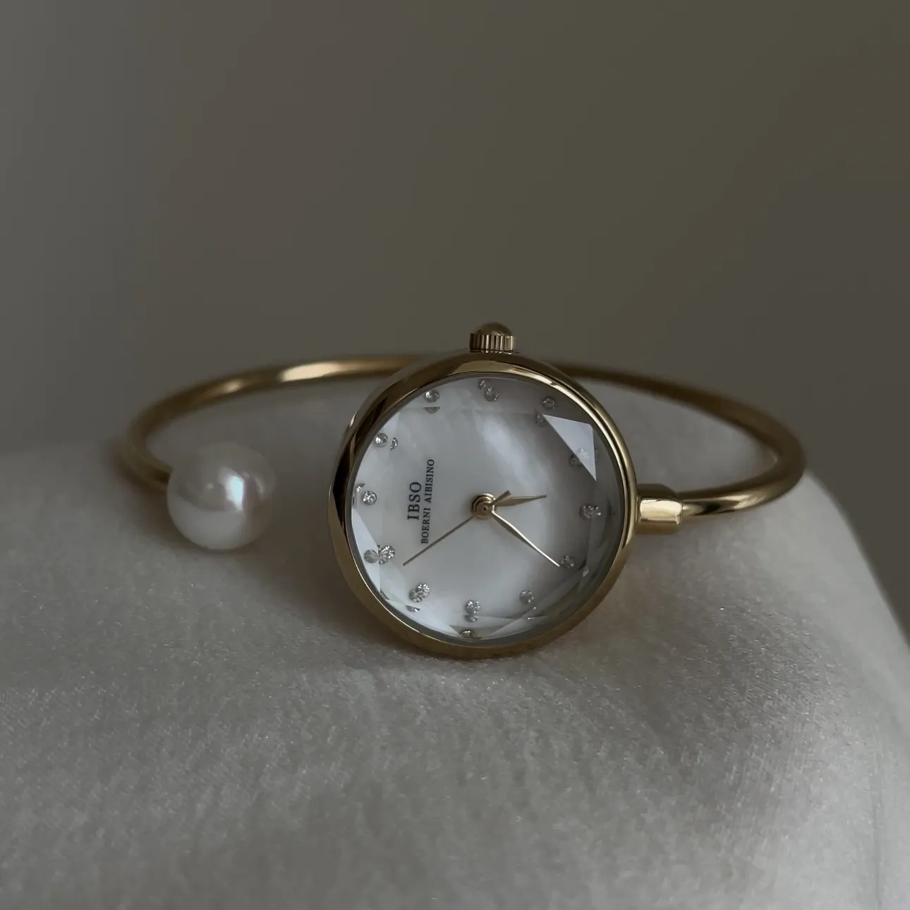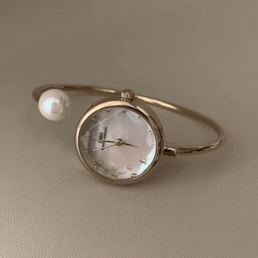 Reloj de perlas francesas: reloj de cuarzo de brazalete de oro lujoso