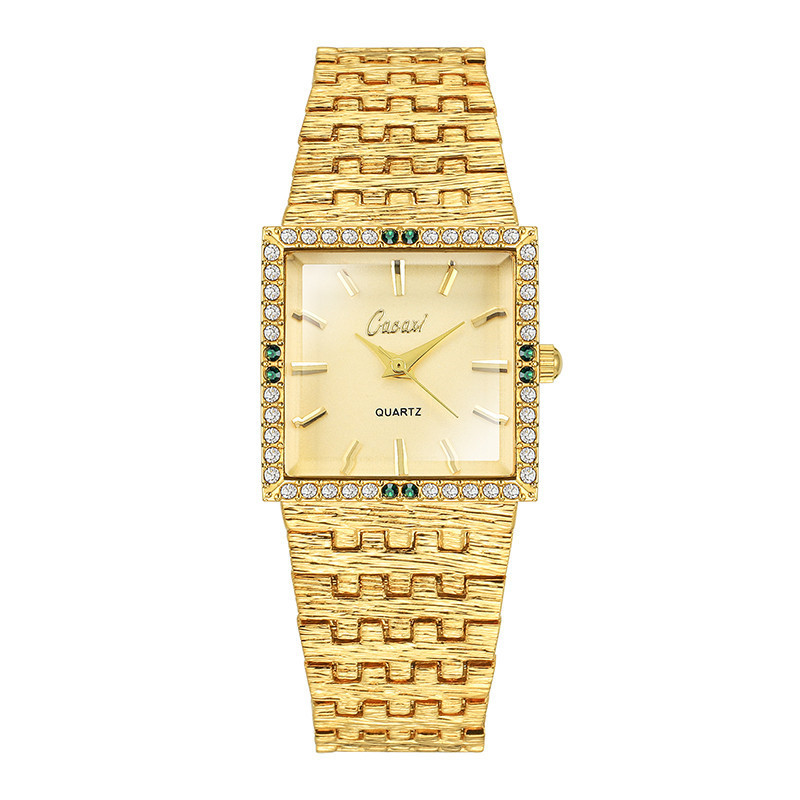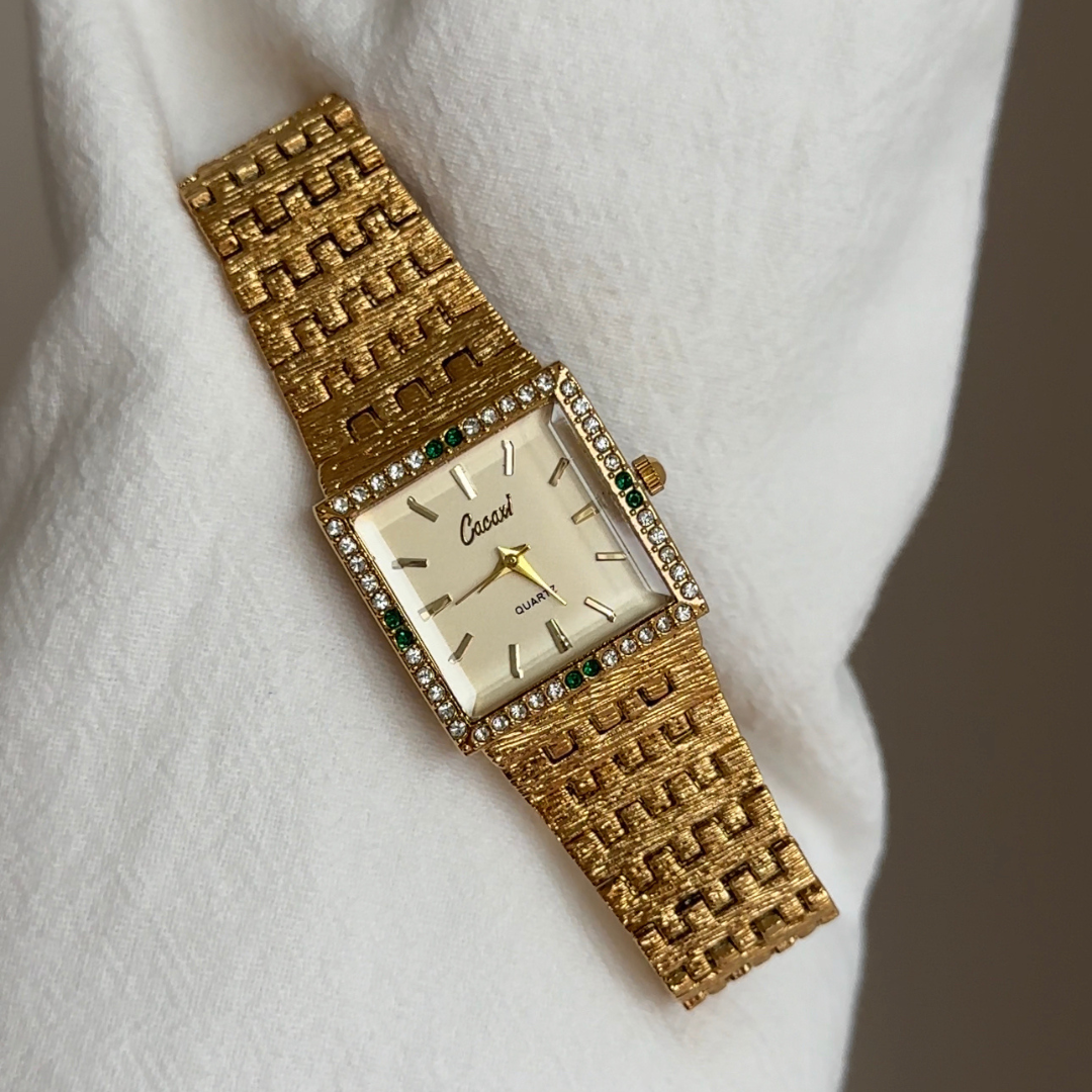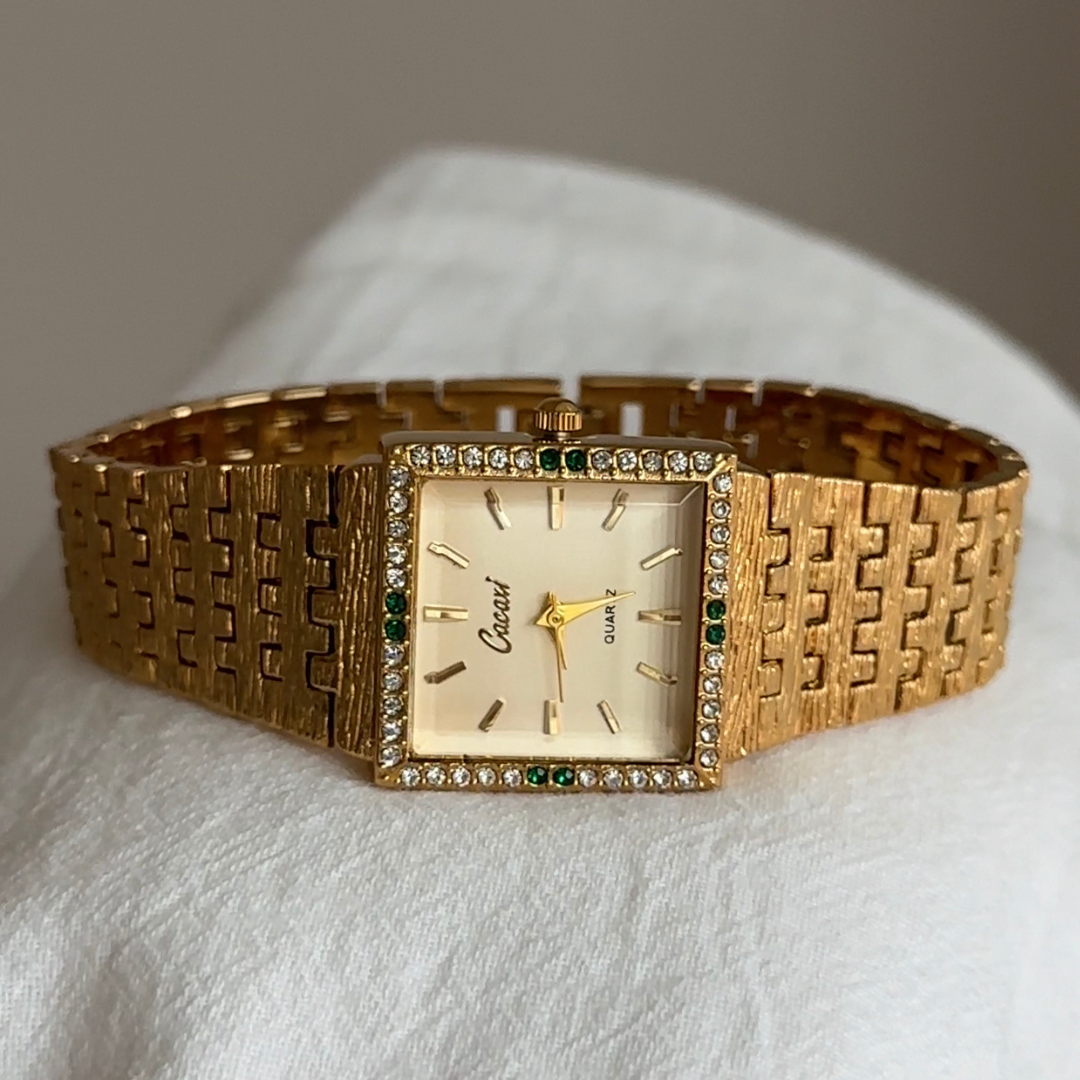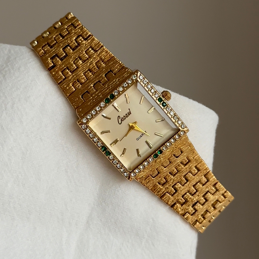 Gold Women Square Watch Quartz Bracelet Strap Diamond Case Vintage — Golden Era