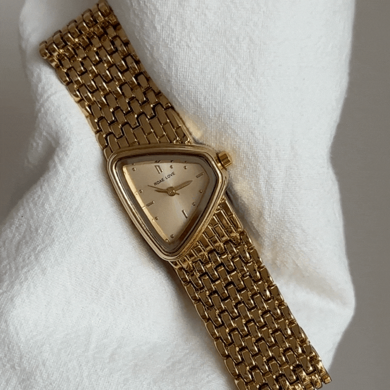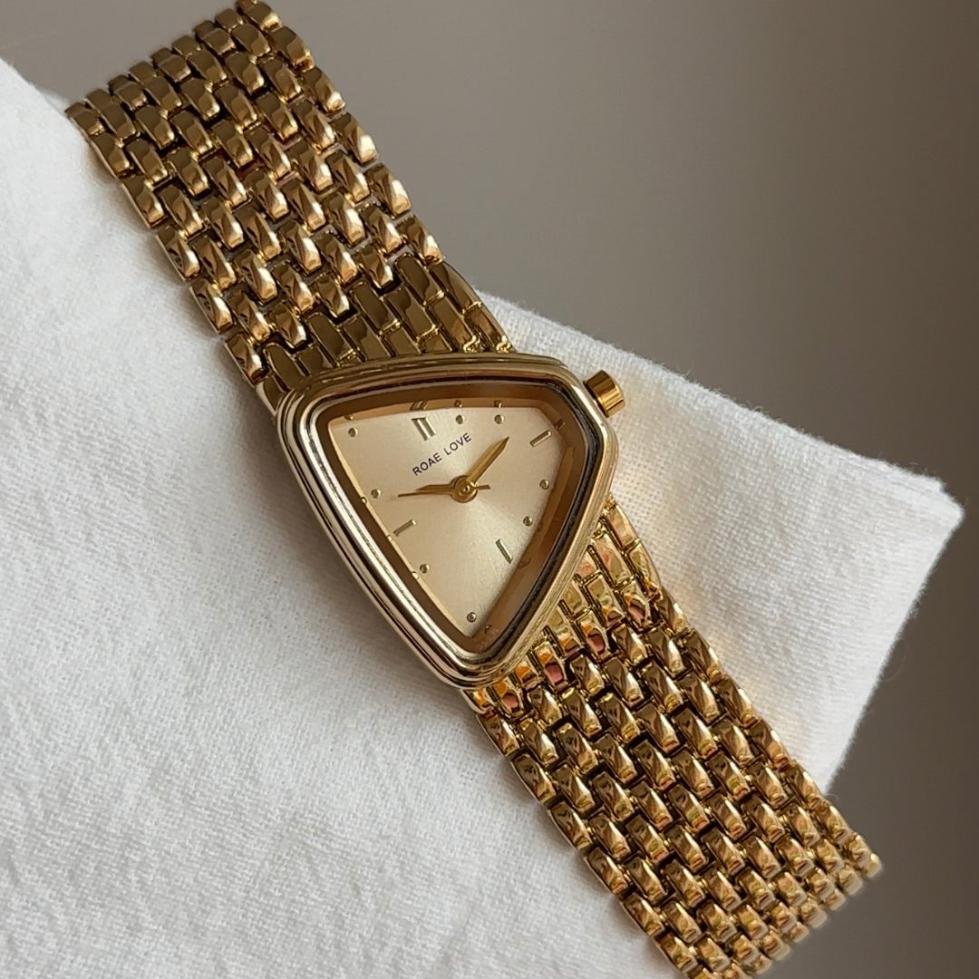 Gold Women Triangle Dial Watch Wide Strap Quartz Minimalist Style – Prism