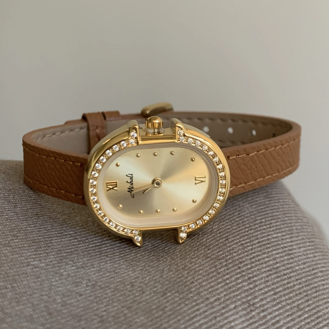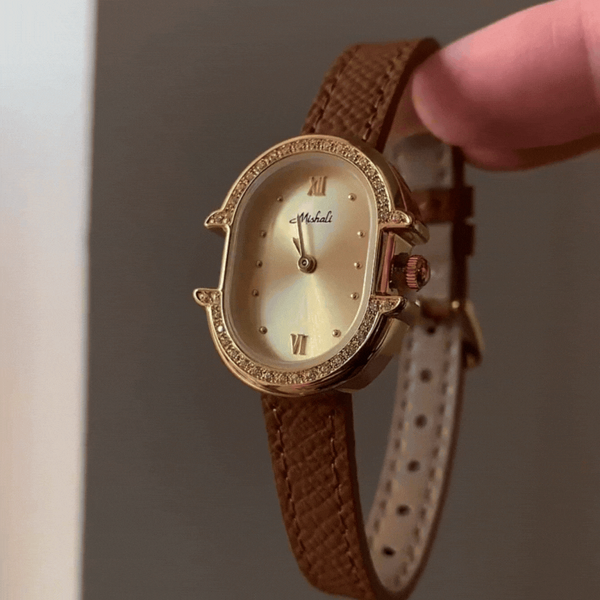 Reloj de elegancia dorada: reloj de cuarzo ovalado de cuero marrón