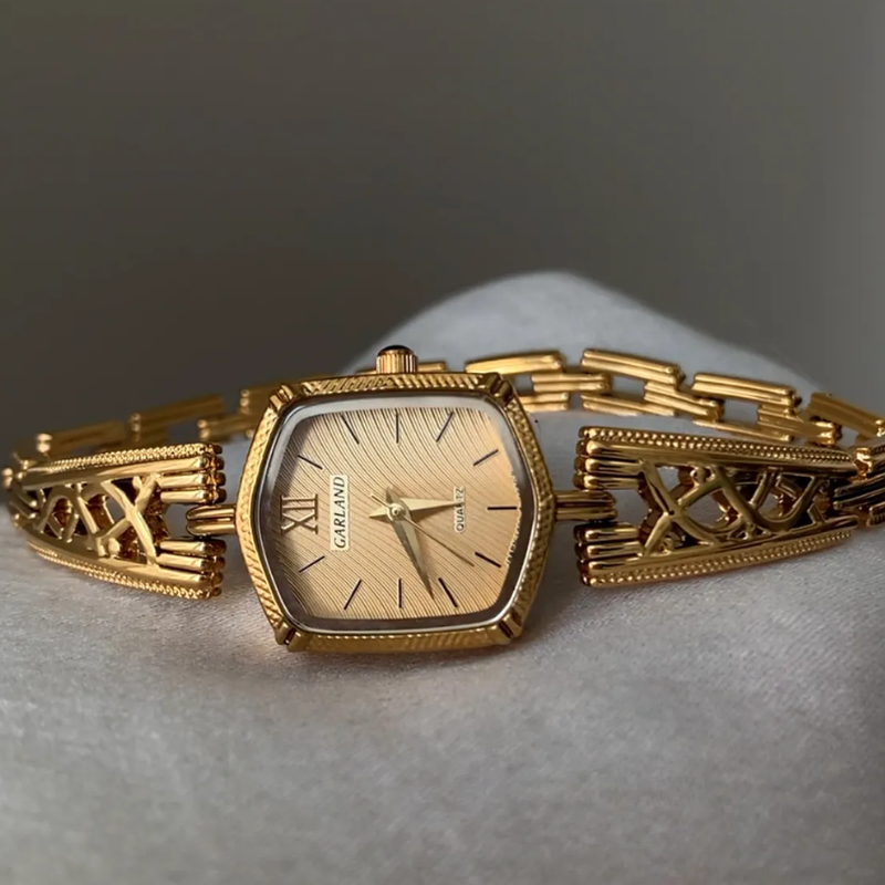 Golden Époque-Petite reloj de inspiración vintage de mujeres con pulsera esculpida