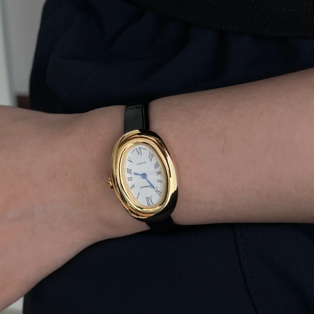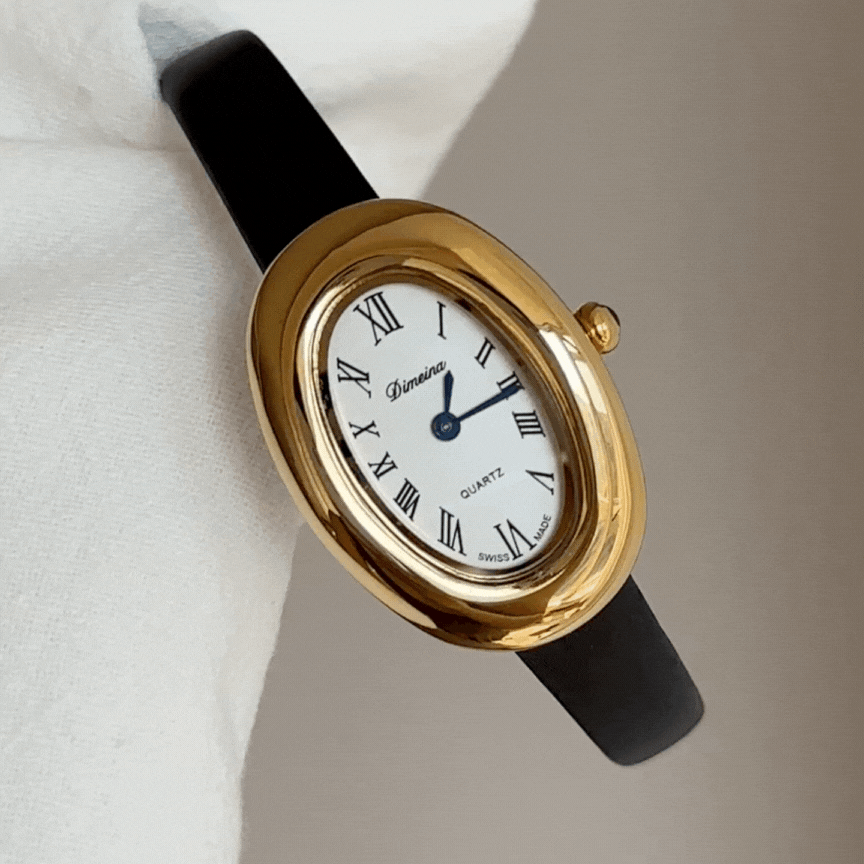 Golden Grace Wimepiece: dial de número romano ovalado con correa negra