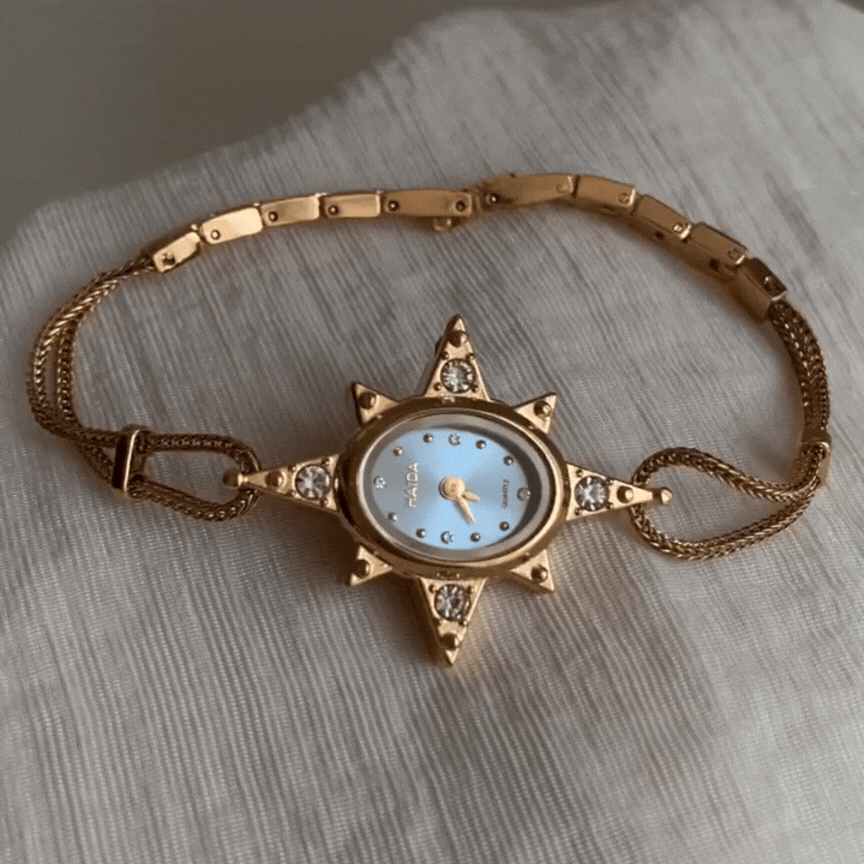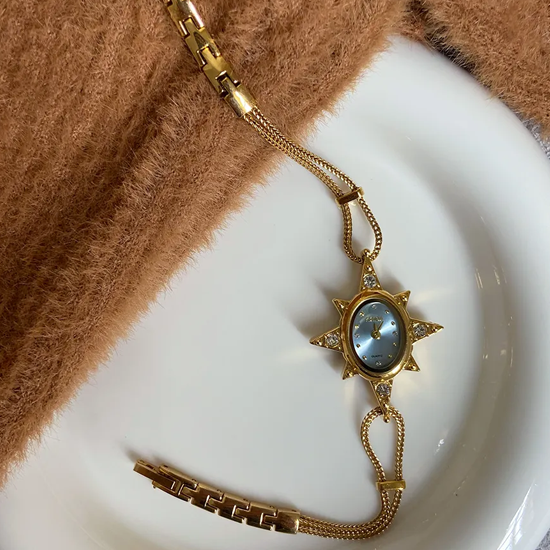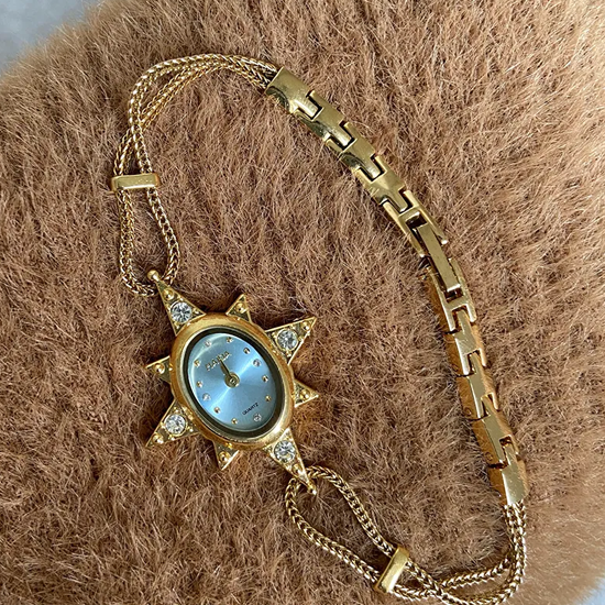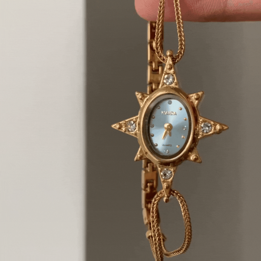 Golden Star Wimepiece: Blue Dial Star Chain Watch