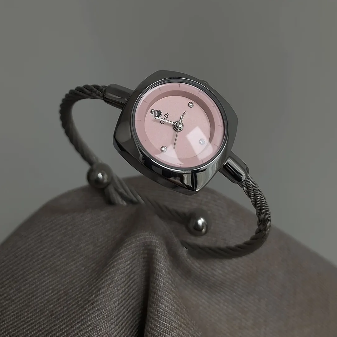 Este elegante reloj de cuarzo para mujer presenta una elegante pulsera gris y una delicada esfera rosa. Una combinación perfecta de elegancia y encanto moderno, ideal para añadir un toque de sofisticación a cualquier look.