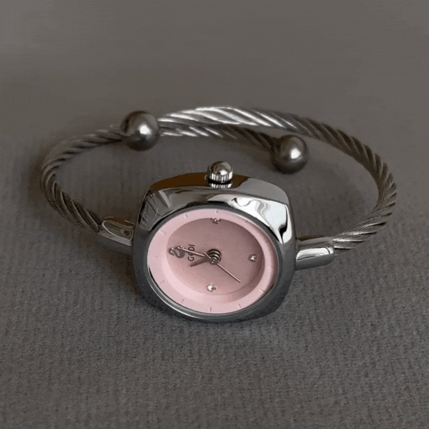 Gray Silver Bangle & Pink Dial: Women's Quartz Watch