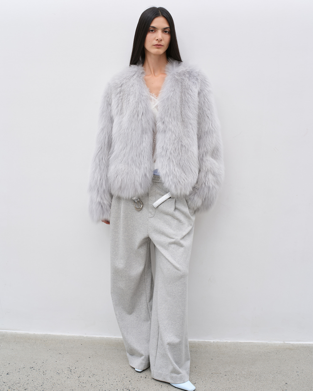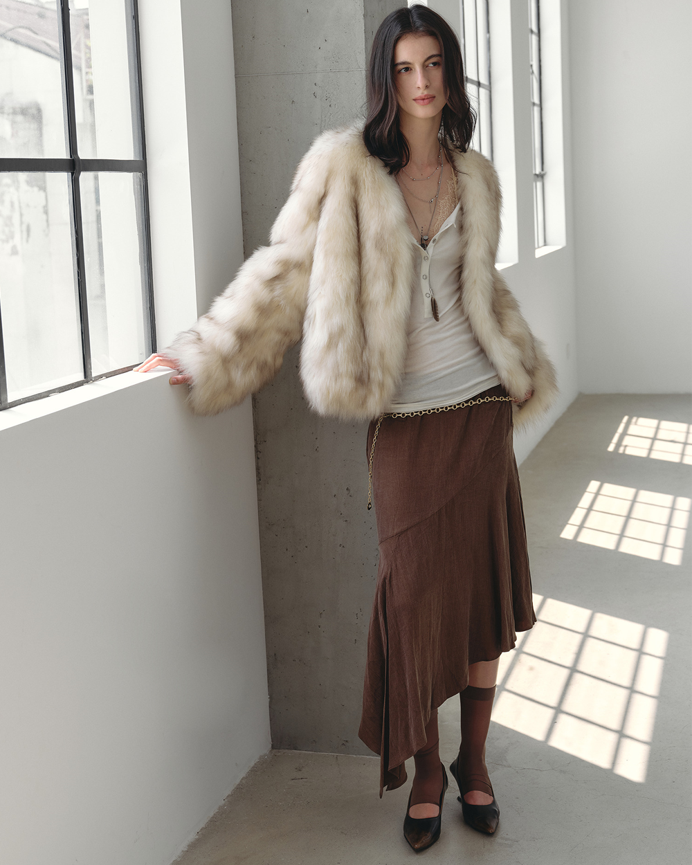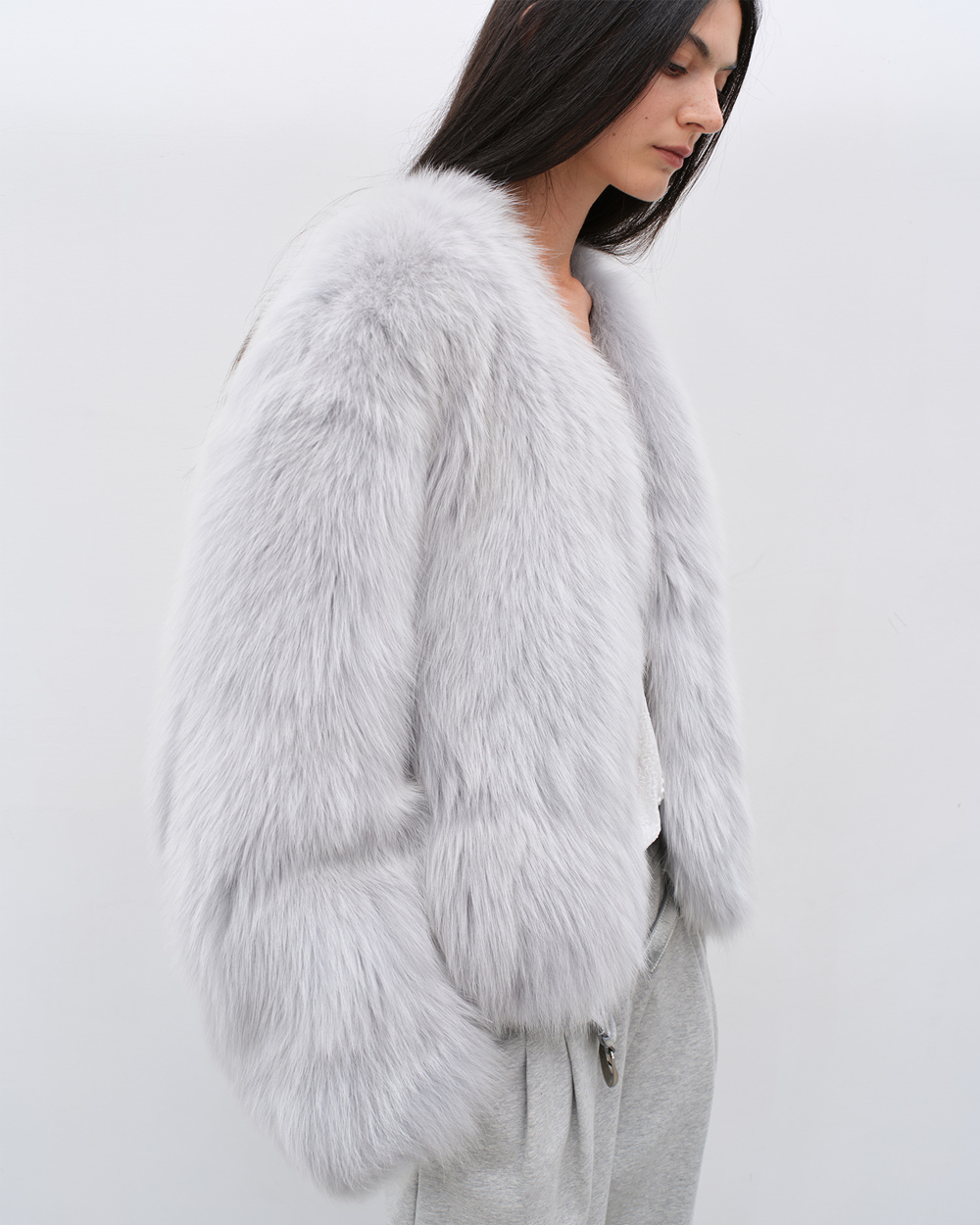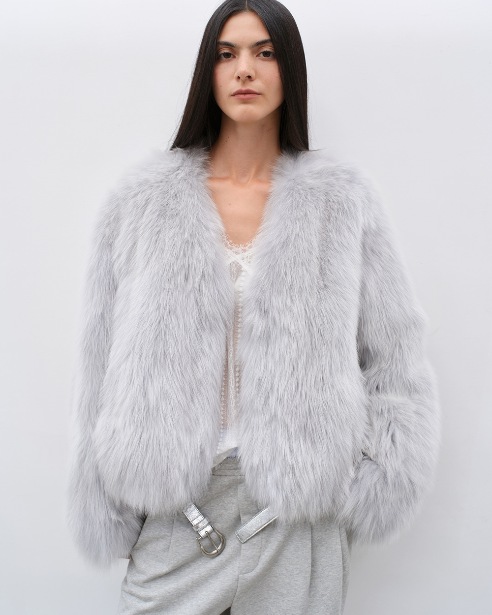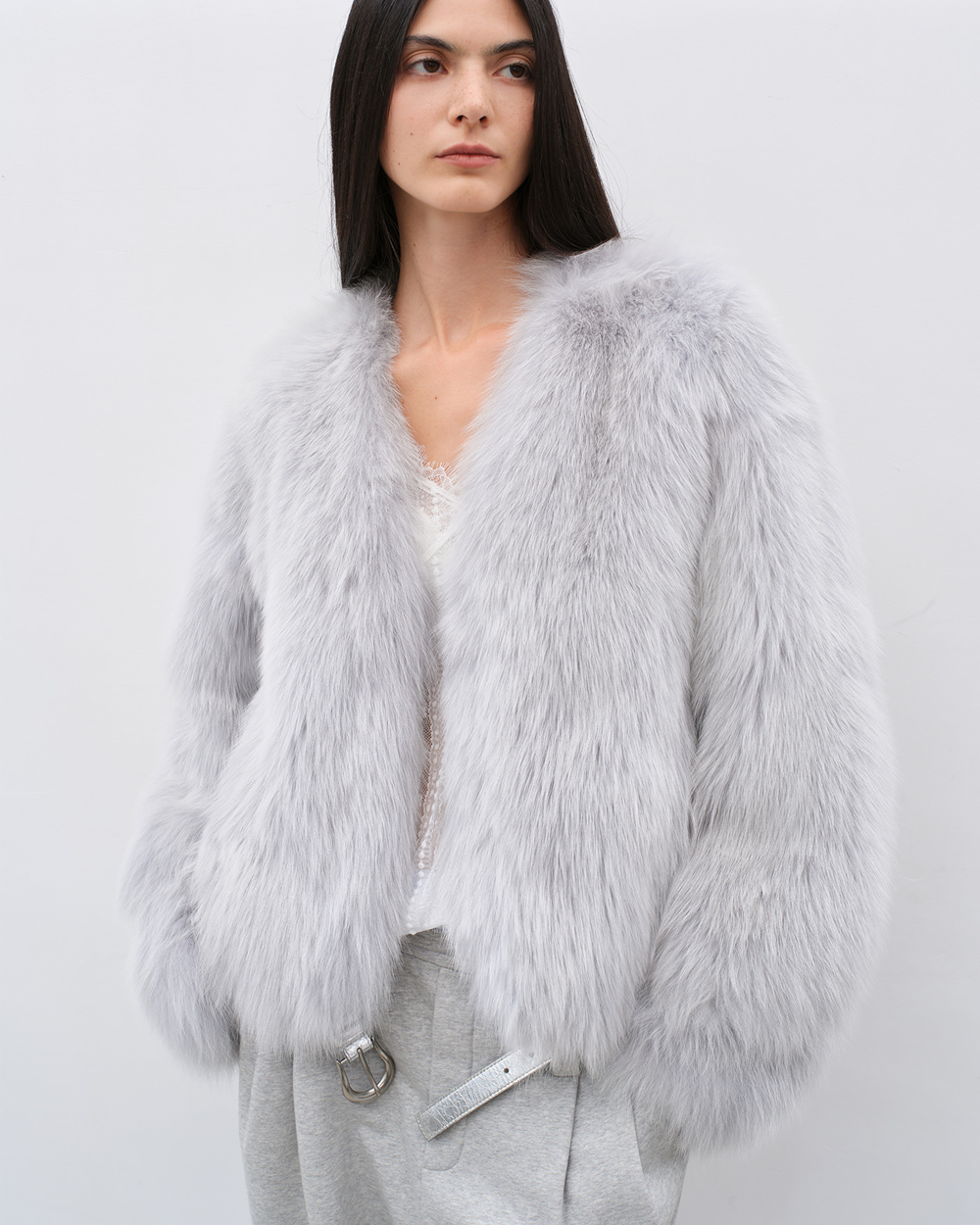 Hand-dyed Finnish fox fur in a two-tone ombré, plush and naturally full with a refined 3D texture and layered color for a fresh, youthful vibe, cut in a relaxed easy fit that flatters and goes with everything.