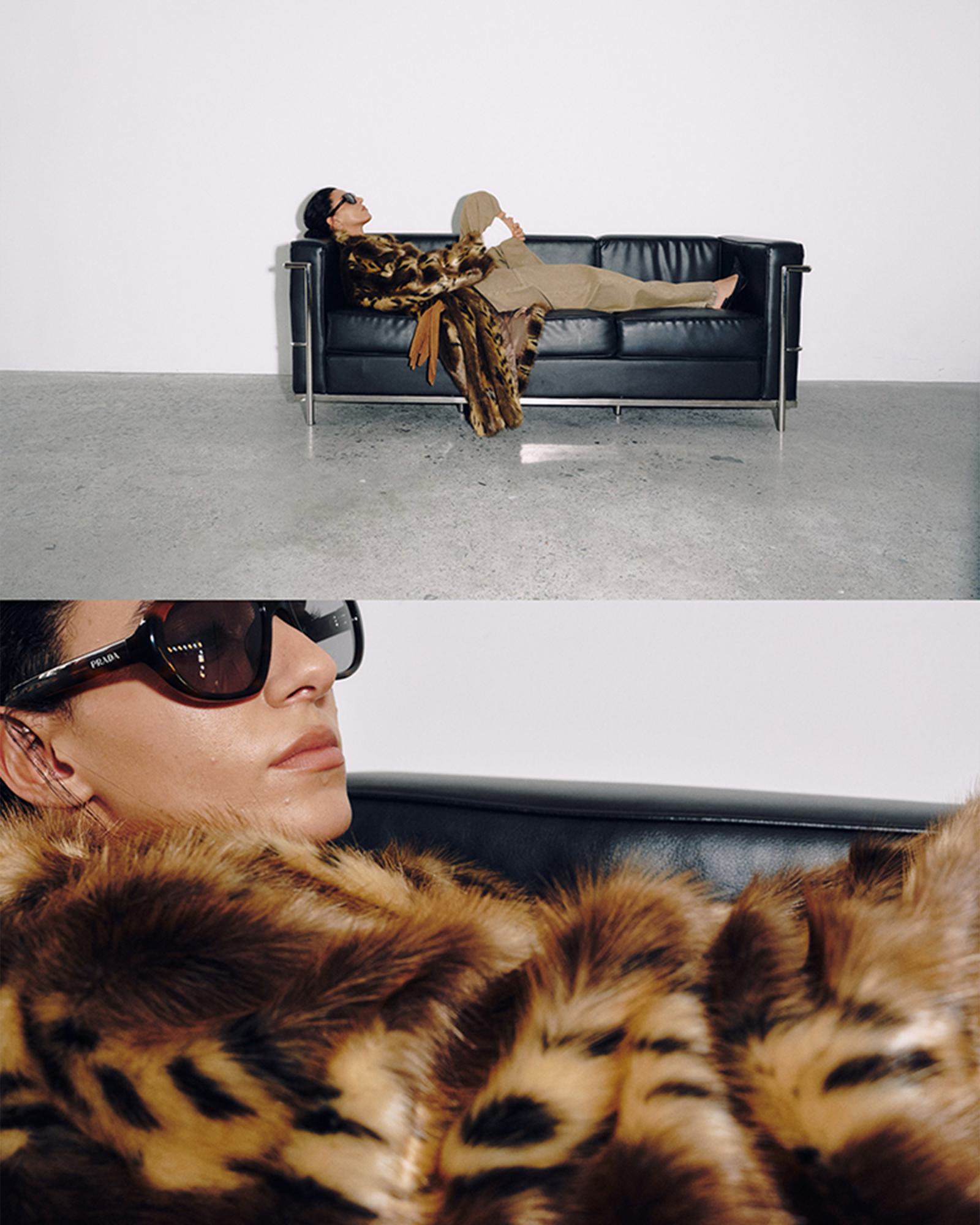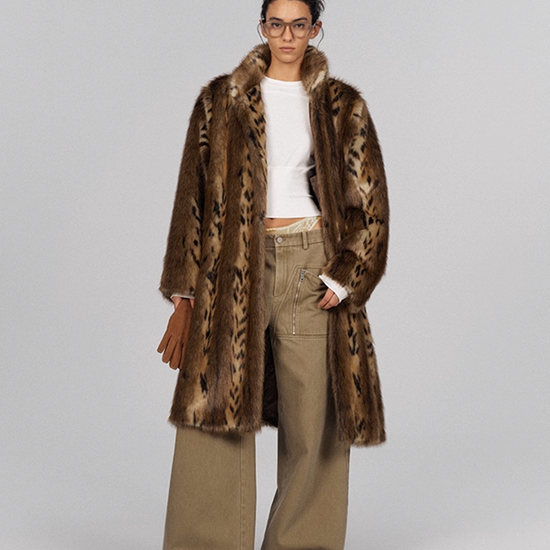 Fabric: Custom acrylic leopard-print faux fur with an eco-friendly pile. Features excellent luster, a luxuriously fluffy and smooth handfeel, and wrinkle-resistant properties for effortless daily wear and care.