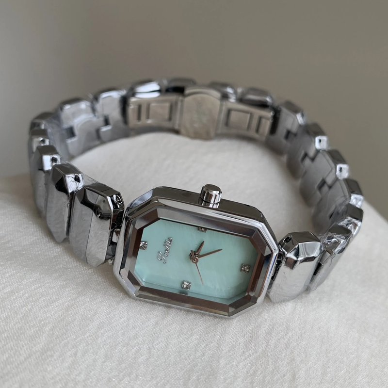 Mint Breeze Wimepiece: reloj de cuarzo de marcado de menta de acero plateado
