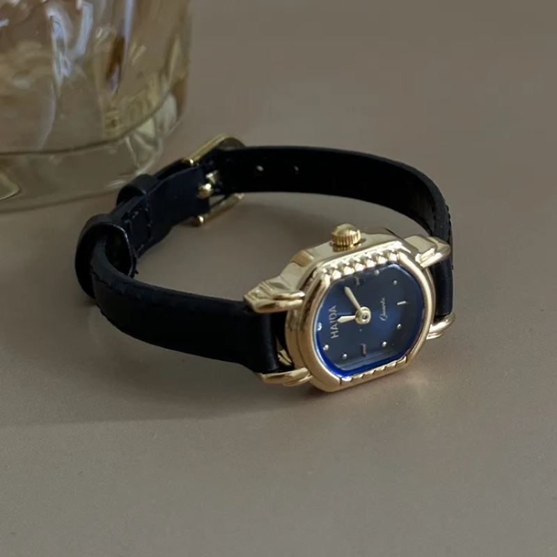 Midnight Grace – Women’s Blue Oval Dial Quartz Watch with Black Leather Strap