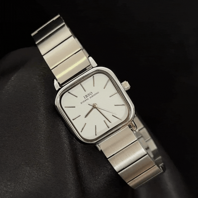 Crafted for refined simplicity, this watch blends minimalist aesthetics with subtle luxury. It features a white rectangular sunburst dial in a polished silver case, paired with a matching stainless steel bracelet. Precise quartz movement ensures reliable timekeeping, while slender silver hands offer clear readability. The adjustable, scratch- and water-resistant bracelet provides daily comfort and durability. Transitioning seamlessly from day to evening, it serves as both a functional accessory and an understated style statement—ideal as a career gift or personal indulgence that balances modern design with timeless sophistication.