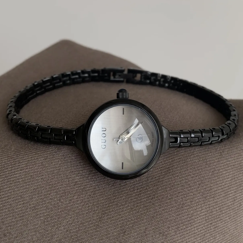 Mono Charm – Black Slim Strap Grey Mini Dial Women’s Quartz Watch