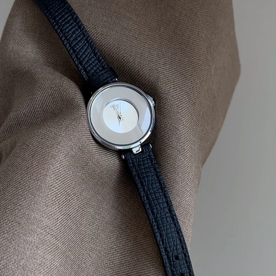 Reloj Onyx Grace: Reloj de cuero minimalista de estuche plateado