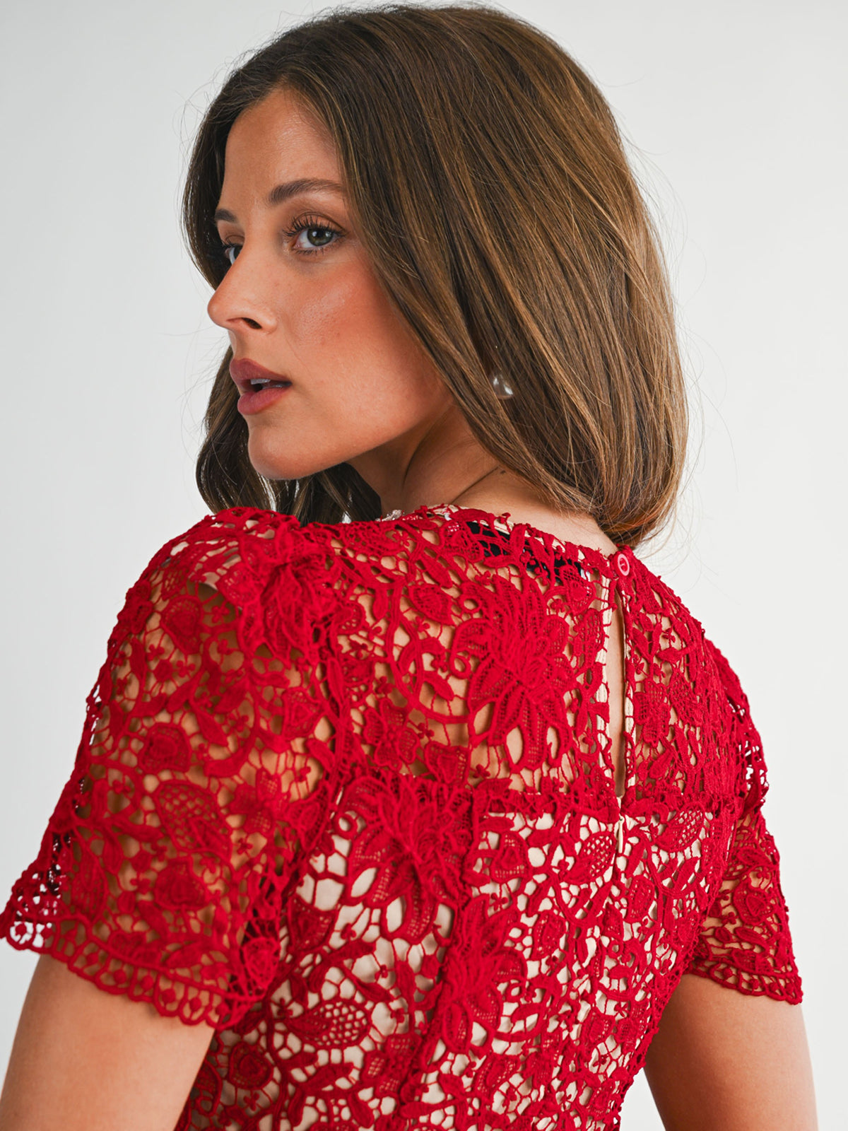 - Look: Intricate all-over floral lace with a delicate scalloped hem