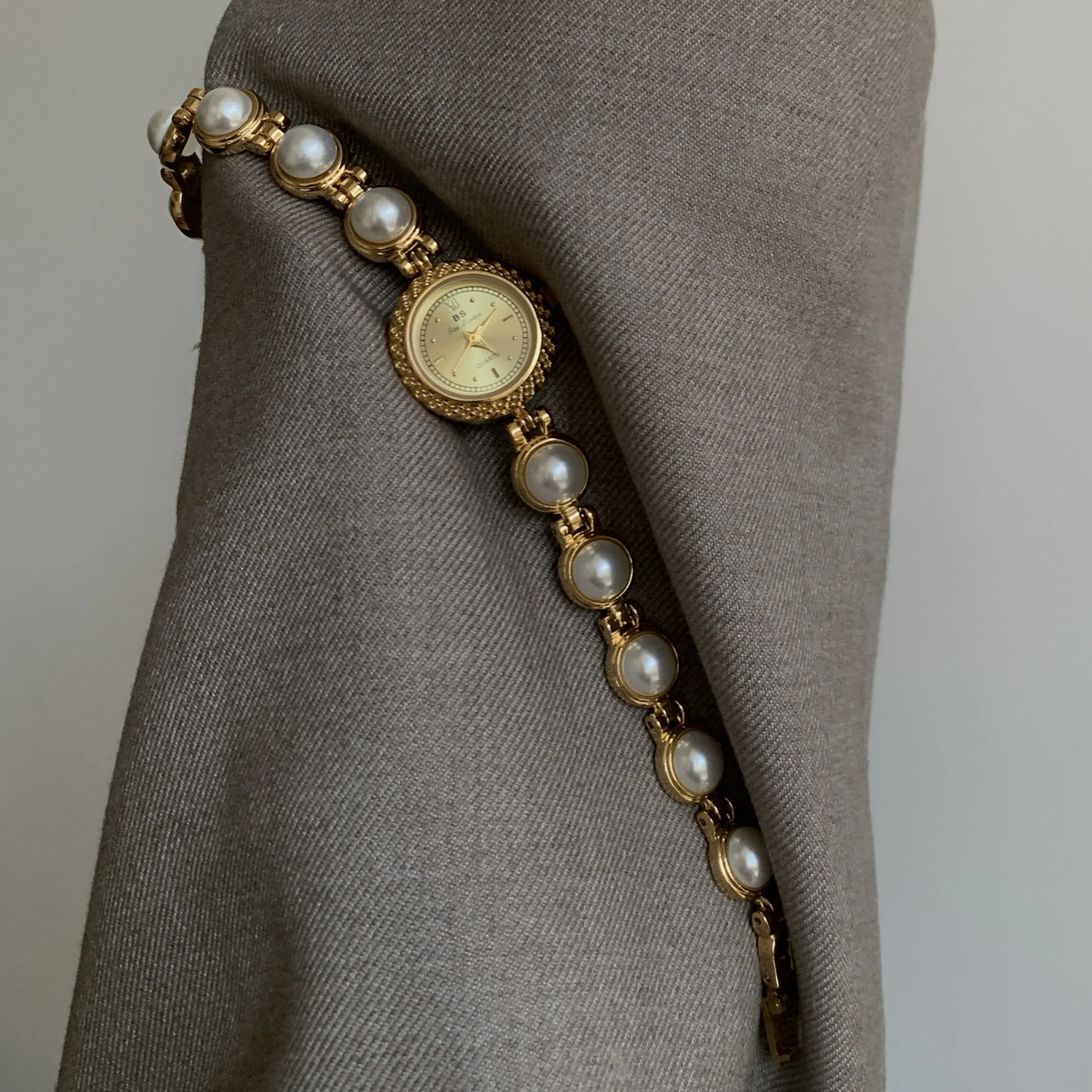 Pearl Majesty Watimepiece: Elegante reloj de brazalete de la cadena redonda