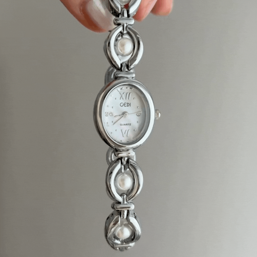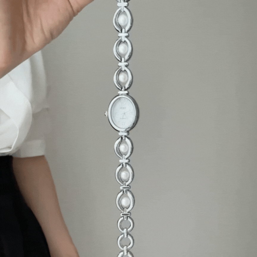 Pearl Whisper - Reloj de pulsera de plata ovalada