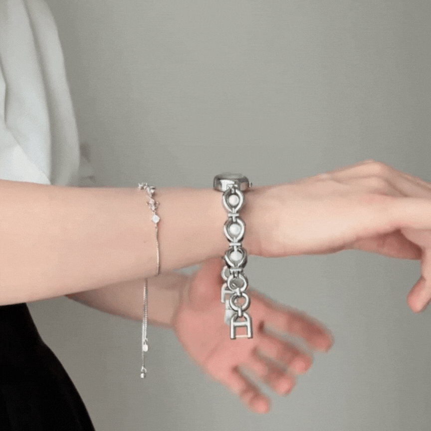 Delicadamente diseñado, este reloj de cuarzo para mujer presenta un estilo atemporal. caja ovalada de plata, una crujiente esfera blanca, y un Correa estilo pulsera adornada con detalles de perlasEs donde la cronometración clásica se combina con el encanto de una joya: lo suficientemente sutil para el día a día, lo suficientemente especial para los momentos más elegantes.