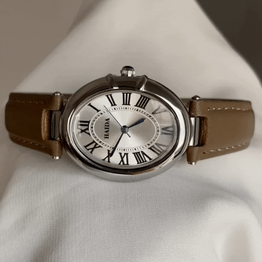 Este reloj de cuarzo para mujer combina un diseño suave caja ovalada de plata con un refinado Correa de piel gris elefanteCombinando sobriedad moderna con elegancia atemporal. La esfera limpia y la silueta curva ofrecen una sutil sofisticación, ideal para quienes prefieren un estilo discreto pero impactante.