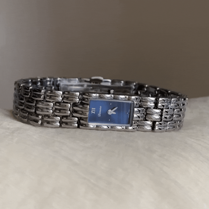 Este exquisito reloj luce una llamativa pulsera azul rey y una elegante caja plateada. Su diseño minimalista y sus vibrantes colores lo convierten en una opción elegante para cualquier ocasión.