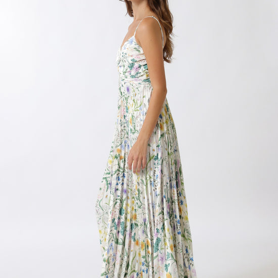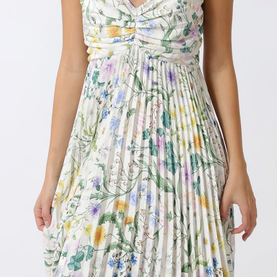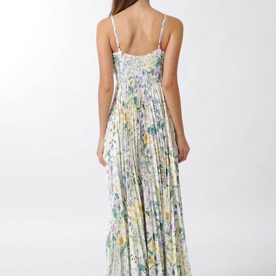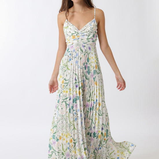 Float through sunny days in this dreamy floral maxi. The lightweight, pleated fabric adds beautiful texture and movement, while the delicate wildflower print brings a touch of whimsy to your look. Designed with a flattering twist-front bodice and a V-neckline, it creates a soft, feminine shape that flows effortlessly to the floor. Whether you're attending a garden wedding or strolling along the beach, this dress is the definition of effortless elegance.