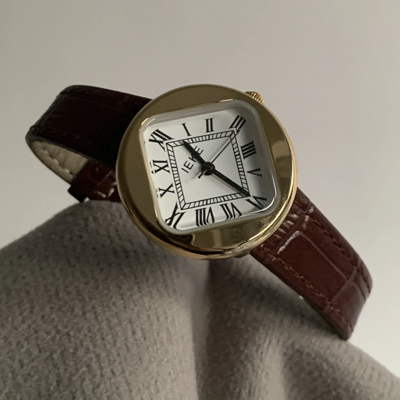 Reloj retro chic: reloj de cuero de cuero de dial romano