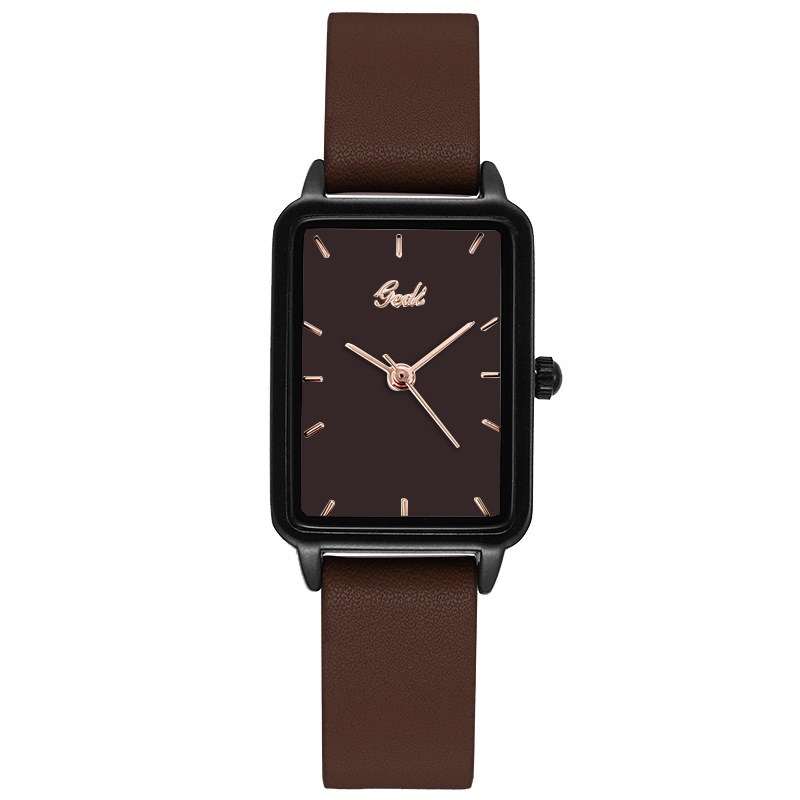 Mocha Frame – Women’s Brown Leather Strap Watch with Black Rectangular Case and Brown Dial