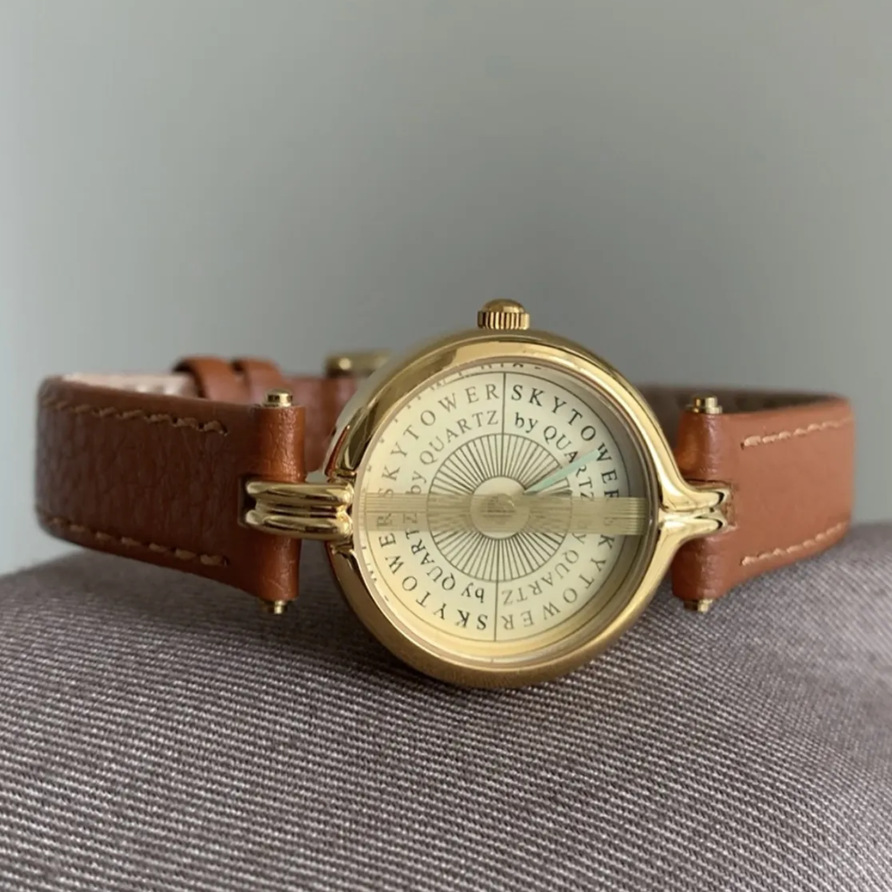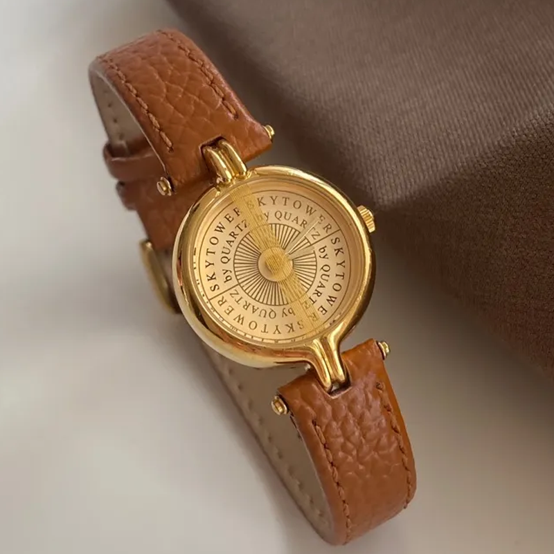 Presentamos el reloj Roman Holiday, una impresionante fusión de encanto vintage y lujo moderno. Con su elegante correa de piel marrón, esfera dorada y marcadores de números romanos, este reloj irradia una elegancia atemporal. Su diseño refinado, combinado con una estética minimalista, garantiza que esta pieza sea versátil y sofisticada, perfecta para realzar cualquier ocasión.