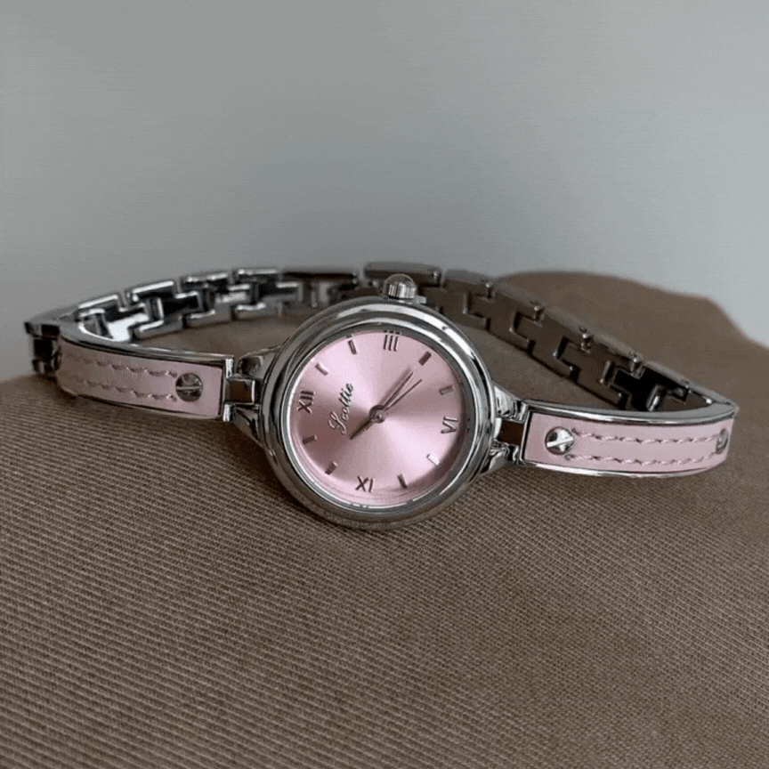 Este reloj de cuarzo para mujer cuenta con una pequeña esfera redonda Combinado con un toque único Diseño de correa de media cadena y media pulsera, presentado en un ambiente cálido tono rosa coral Que realza la piel. Como una joya fina, combina una feminidad fluida con un estilo cotidiano.