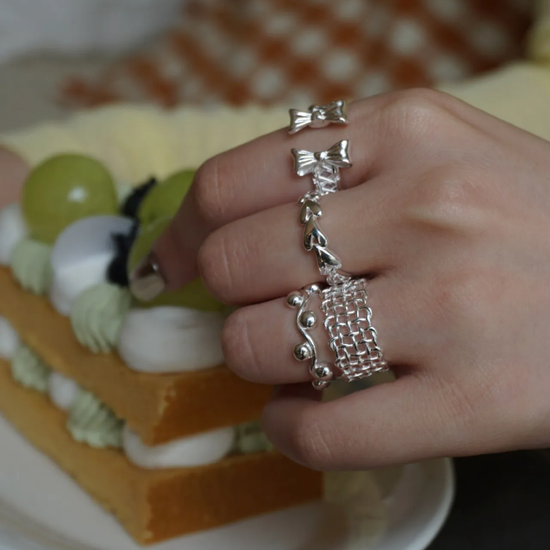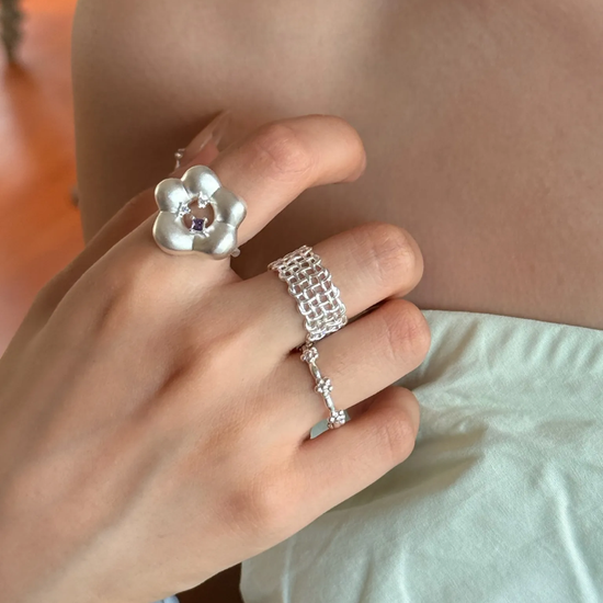 A delicate vintage-inspired openwork lace ring crafted entirely from S925 sterling silver. The open adjustable design offers a comfortable fit while highlighting elegant lace-like details—refined, feminine, and timeless.