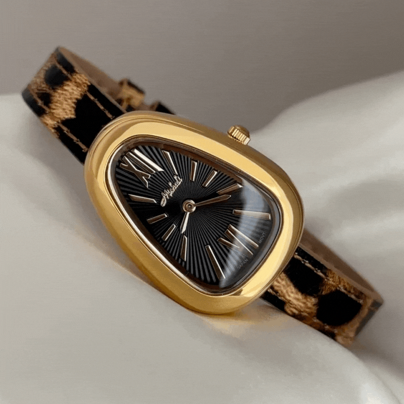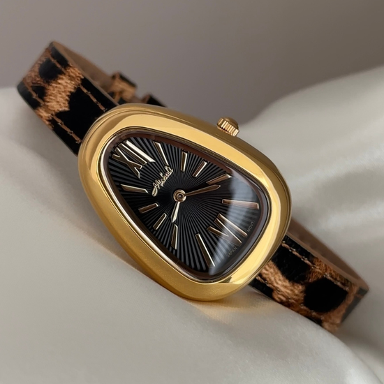 Crafted for statement-making style, this distinctive timepiece features a sculpted black snake-head dial with intricate texture, set in a polished gold-tone case. Paired with a rich brown genuine leather strap, it blends daring aesthetics with timeless craftsmanship. Powered by reliable quartz movement with gold-toned hands, it ensures precise timekeeping. The supple, adjustable strap is treated for durability and enhanced with scratch- and water-resistant features. Transitioning effortlessly from day to night, it serves as both a functional watch and a striking fashion statement—ideal as a standout gift or a personal indulgence fusing symbolic design with modern versatility.