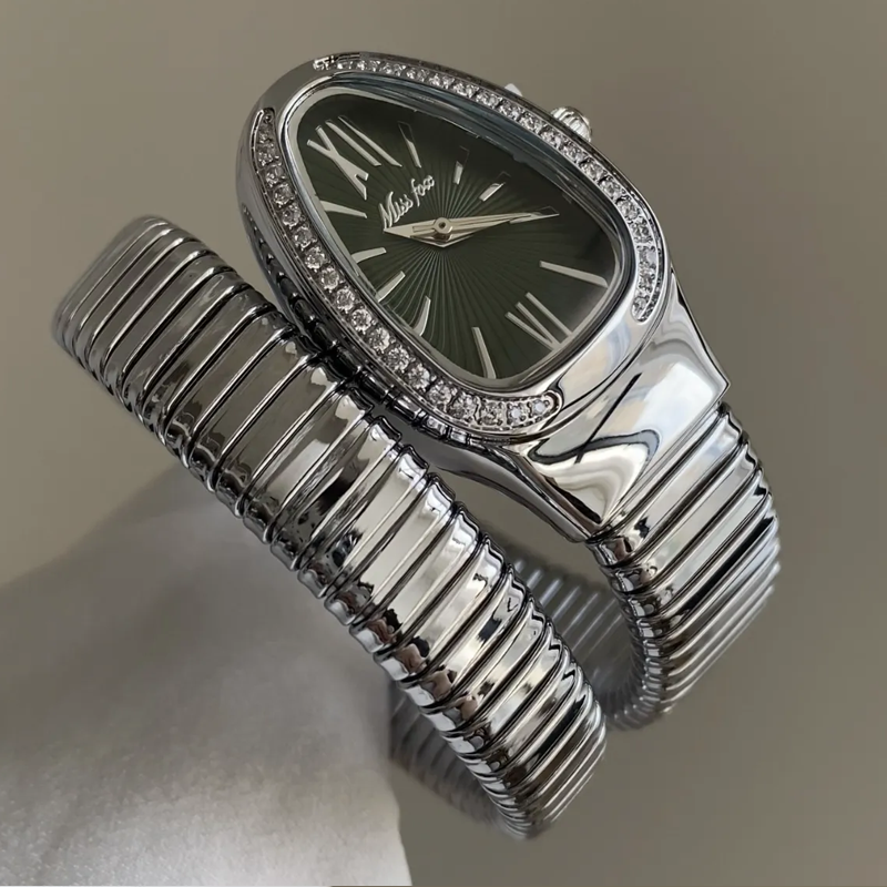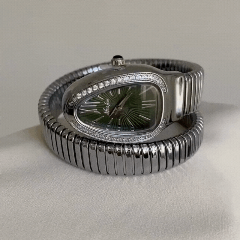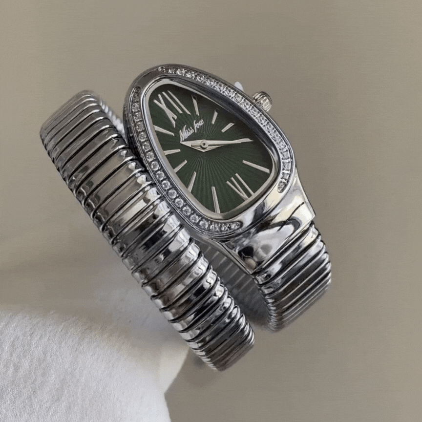 Presentando el Reloj Serpent GreenUna impresionante fusión de diseño inspirado en la naturaleza y elegancia moderna. Con un diseño de cabeza de serpiente plateada como pieza central, este reloj irradia una audaz sofisticación. La esfera verde complementa el singular motivo de serpiente, mientras que la pulsera elástica garantiza un ajuste cómodo para cualquier muñeca. Perfecto para añadir un toque de encanto e intriga a tu estilo, este reloj es ideal para quienes aprecian la creatividad y el lujo en sus accesorios.