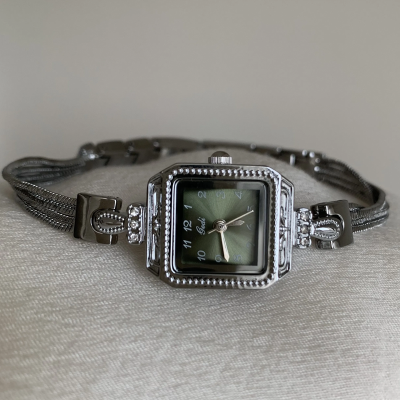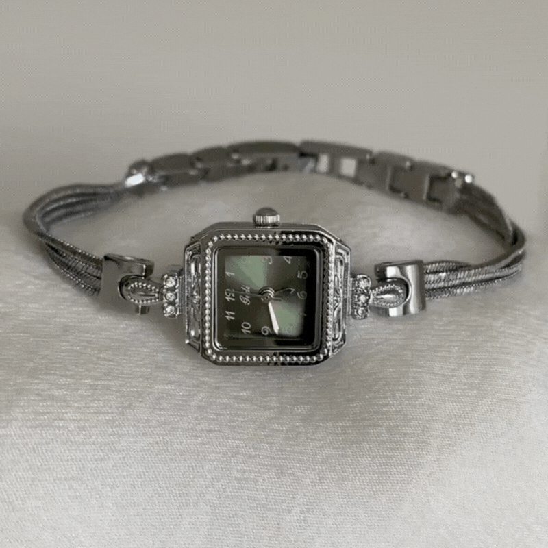 Presentando el Reloj con borla de plataUna impresionante fusión de estilo moderno y elegancia. Con una elegante cadena plateada con borlas, este reloj luce una audaz esfera verde con distintivos marcadores numéricos sobre una superficie cuadrada, ofreciendo una interpretación fresca y única del diseño clásico. El movimiento de cuarzo garantiza precisión, mientras que la llamativa combinación de vibrantes verdes y plateados aporta un toque contemporáneo y chic a su muñeca. Perfecto para quienes aprecian los detalles refinados con un toque de diversión, el... Reloj con borla de plata Es un accesorio esencial tanto para ocasiones casuales como formales.