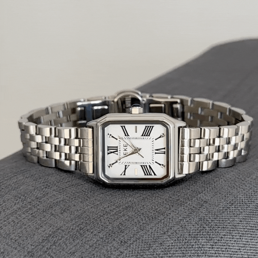 Silver Women Rectangular Dial Watch Strap White Face Quartz Minimalist Style – Ivory
