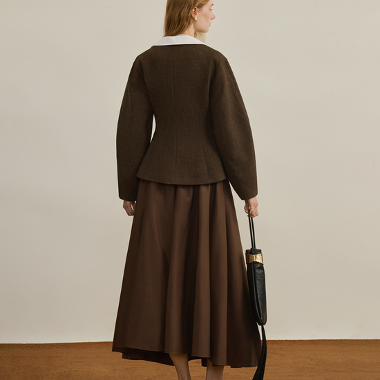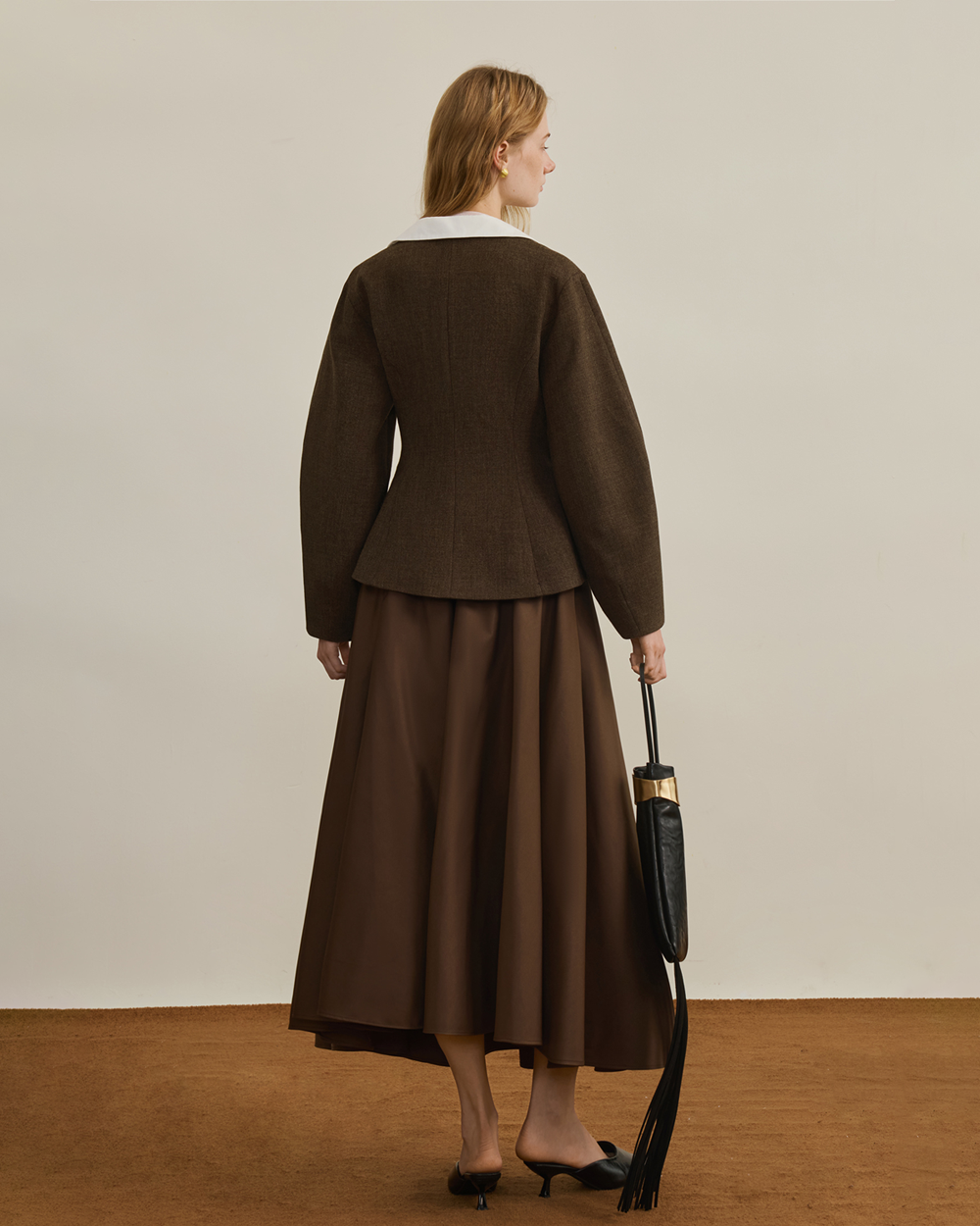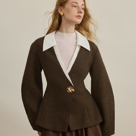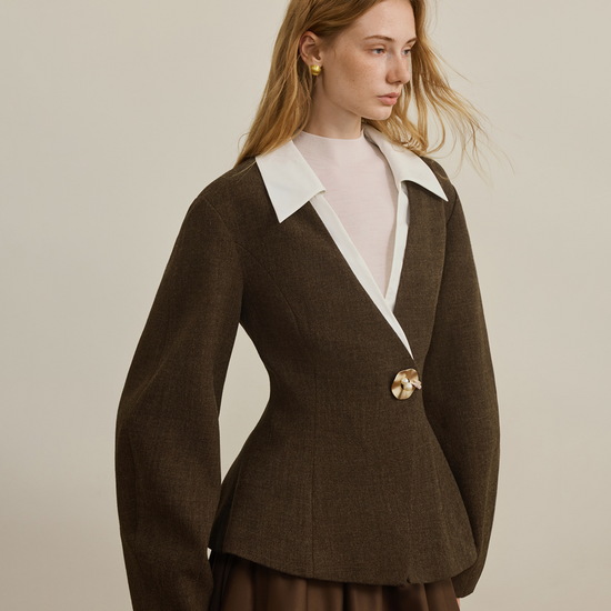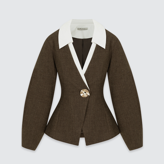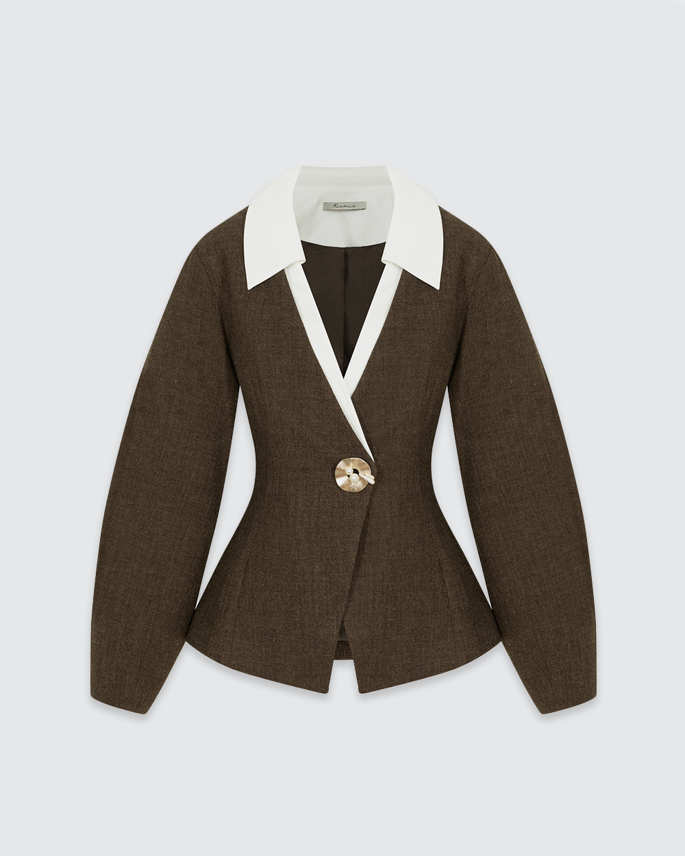 Single-Button Contrast Lapel Tailored Waist Wool Blazer