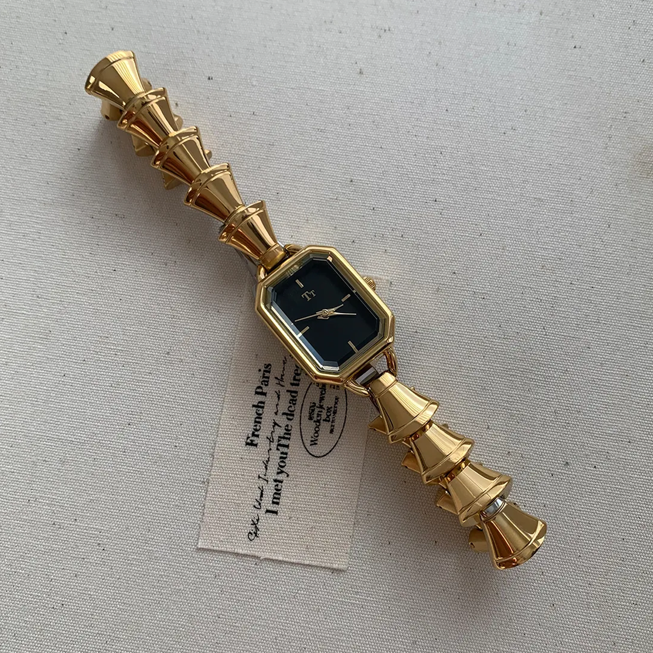Realza tu estilo con este impactante reloj de cuarzo, con una atrevida correa dorada y una elegante caja cuadrada con esfera negra profunda. Una fusión perfecta de individualidad y sofisticación atemporal.