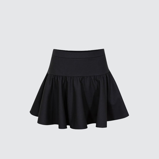 - Mini pleated skirt balances power with playful charm