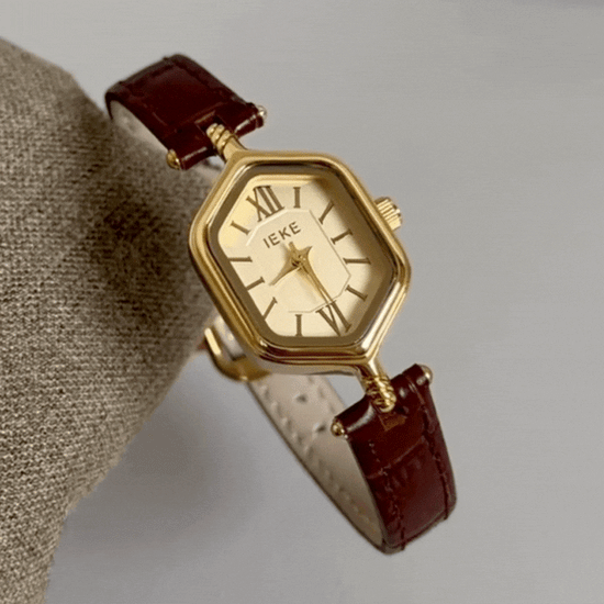 Unique Retro Brown Leather Strap Rhombus Gold Dial Roman Numeral Ladies Quartz Watch - Bohemian Rhyme
