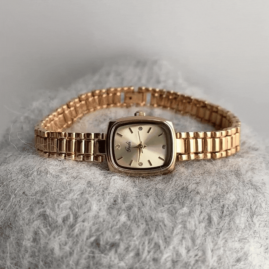 Una pieza atemporal con caja dorada y una delicada esfera mini, diseñada para realzar las muñecas delgadas. Su encanto de inspiración vintage y su diseño refinado lo hacen perfecto para un look sofisticado.