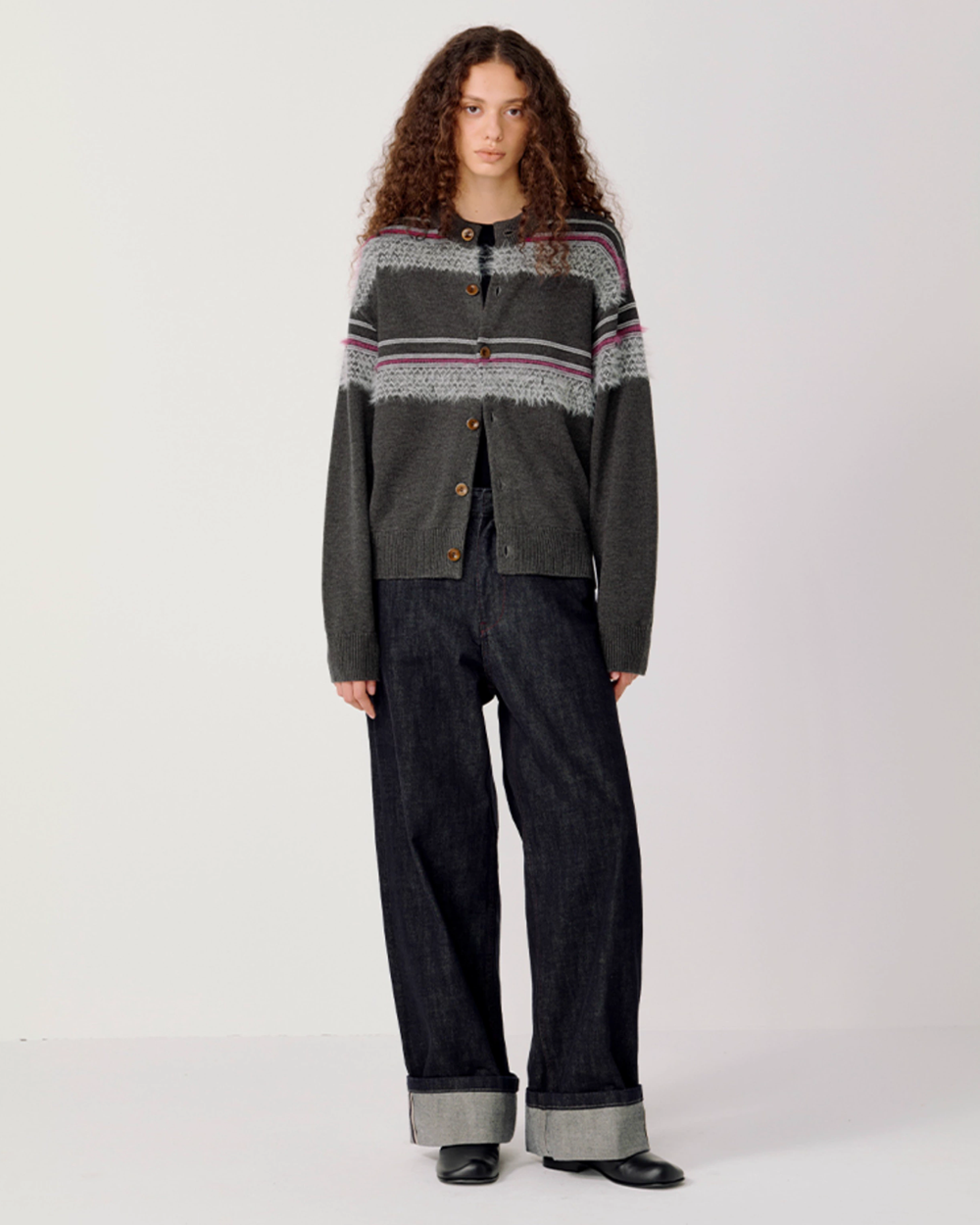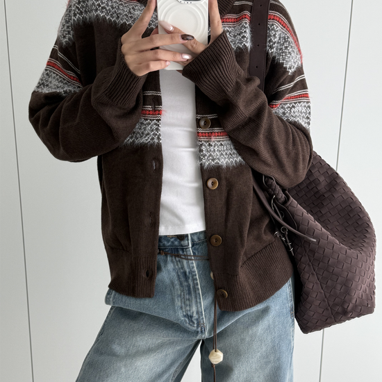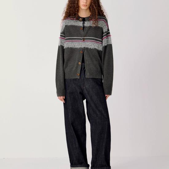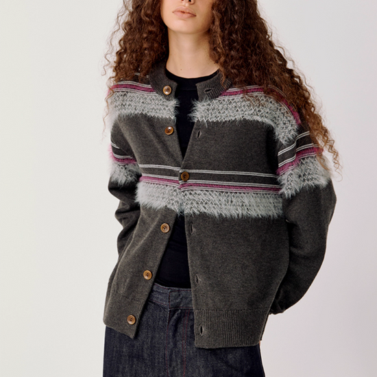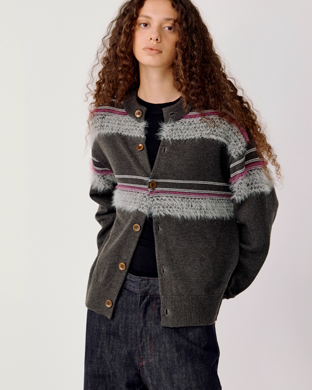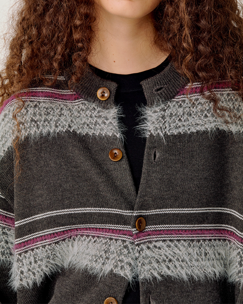 - Design Elements: Retro stripe pattern, button-down front, ribbed cuffs and hem