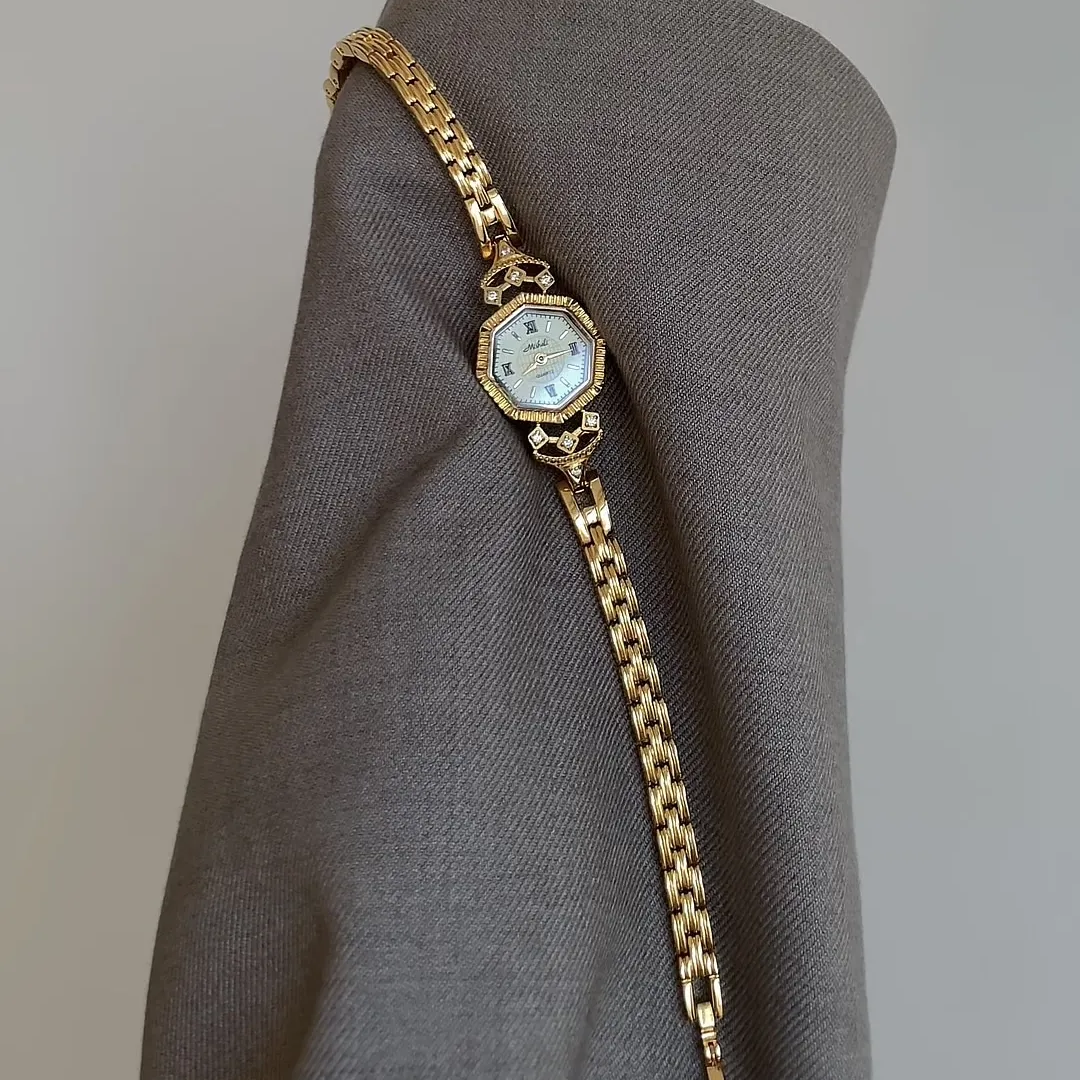 Reloj de cuarzo femenino: pulsera de oro de inspiración vintage con dial octogonal