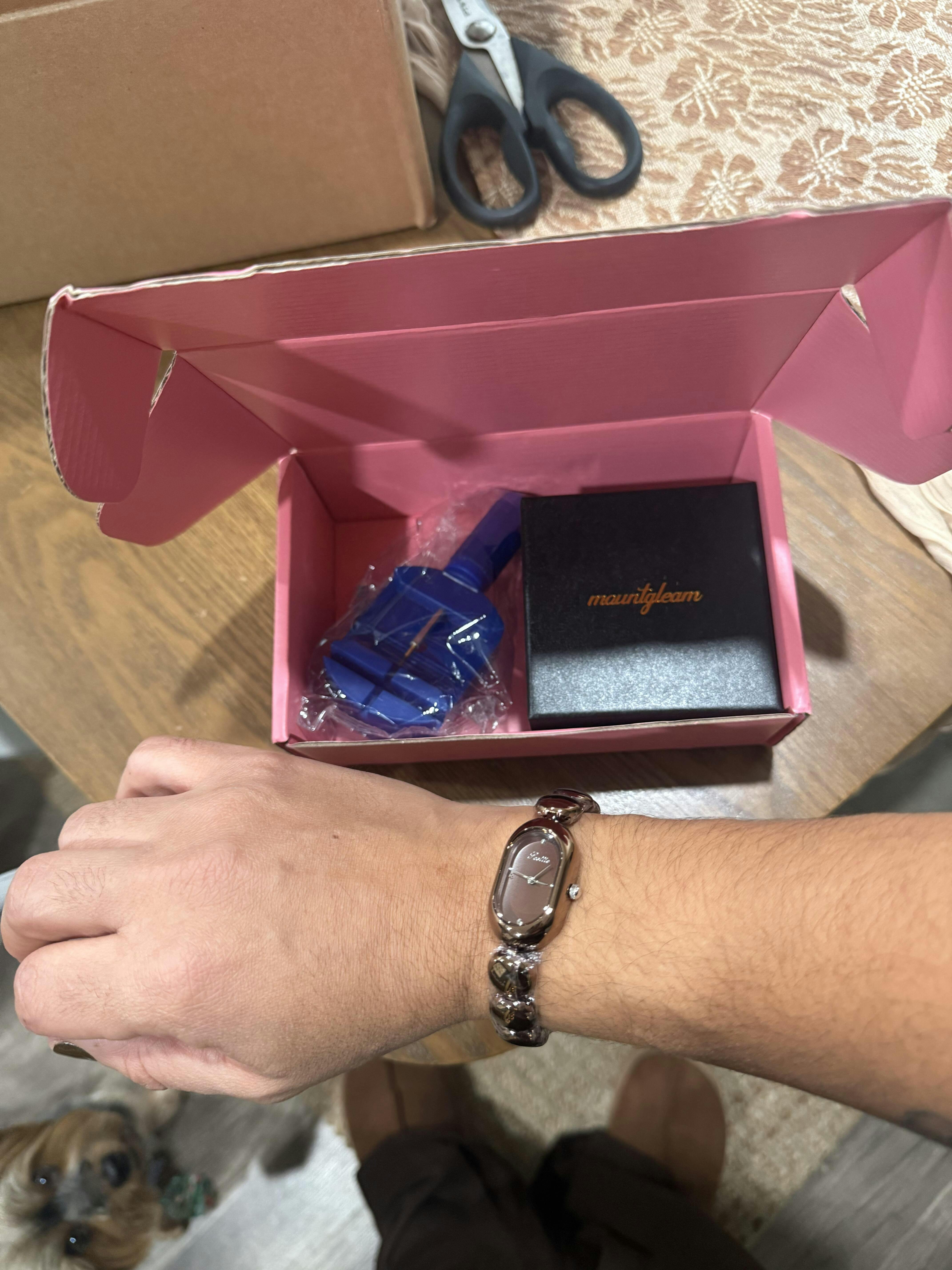 The watch was tiny it barely fits a child it’s not average sizing at all my wrist is small and it didnt fit