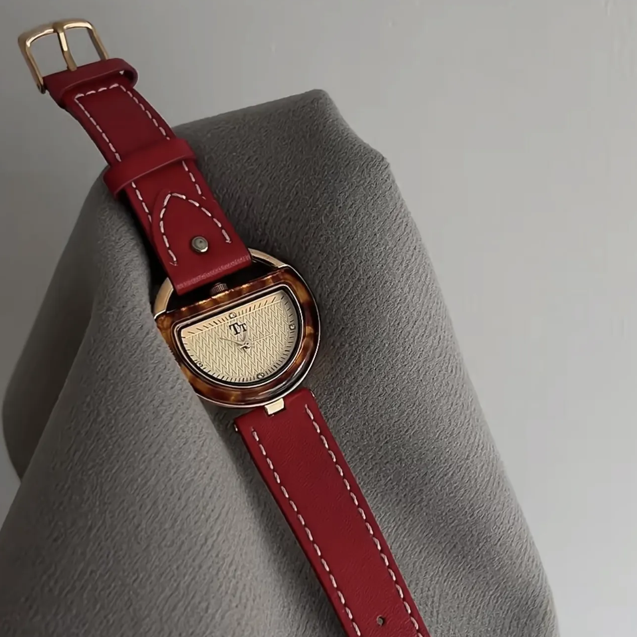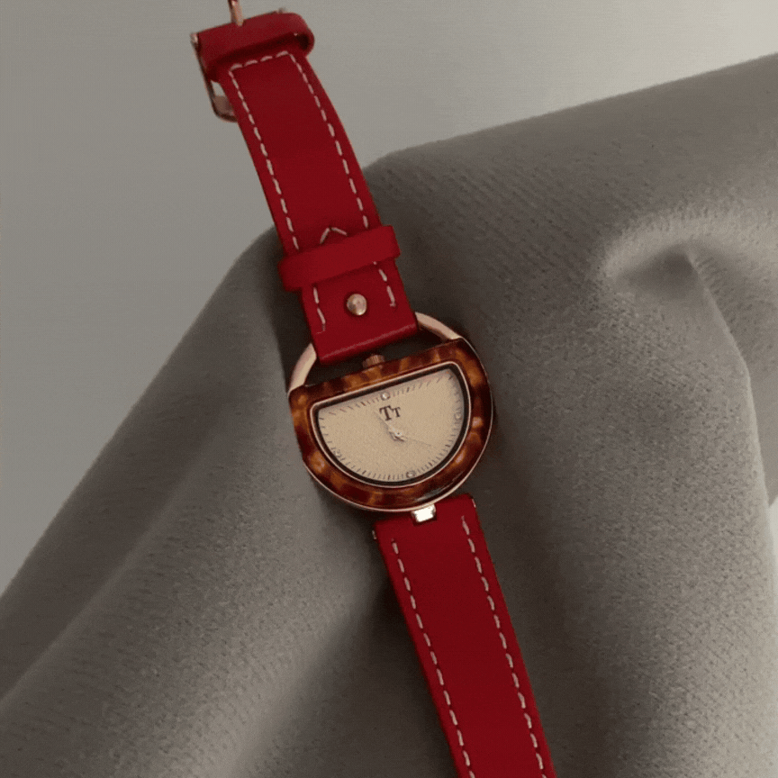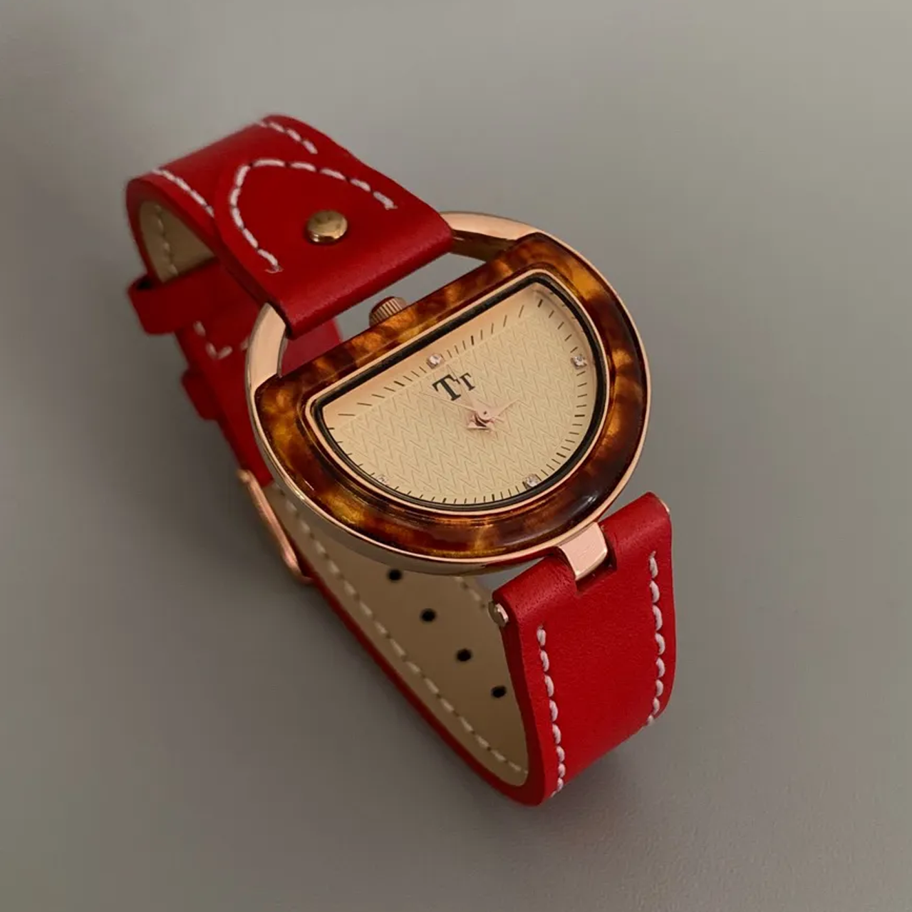 Montre Amber Crescent : montre à quartz demi-lune rouge angora